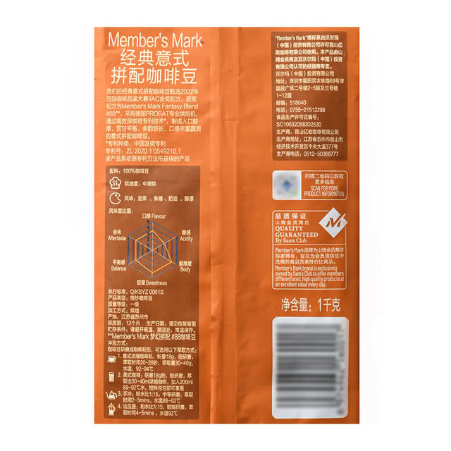 山姆超市经典意式拼配咖啡豆