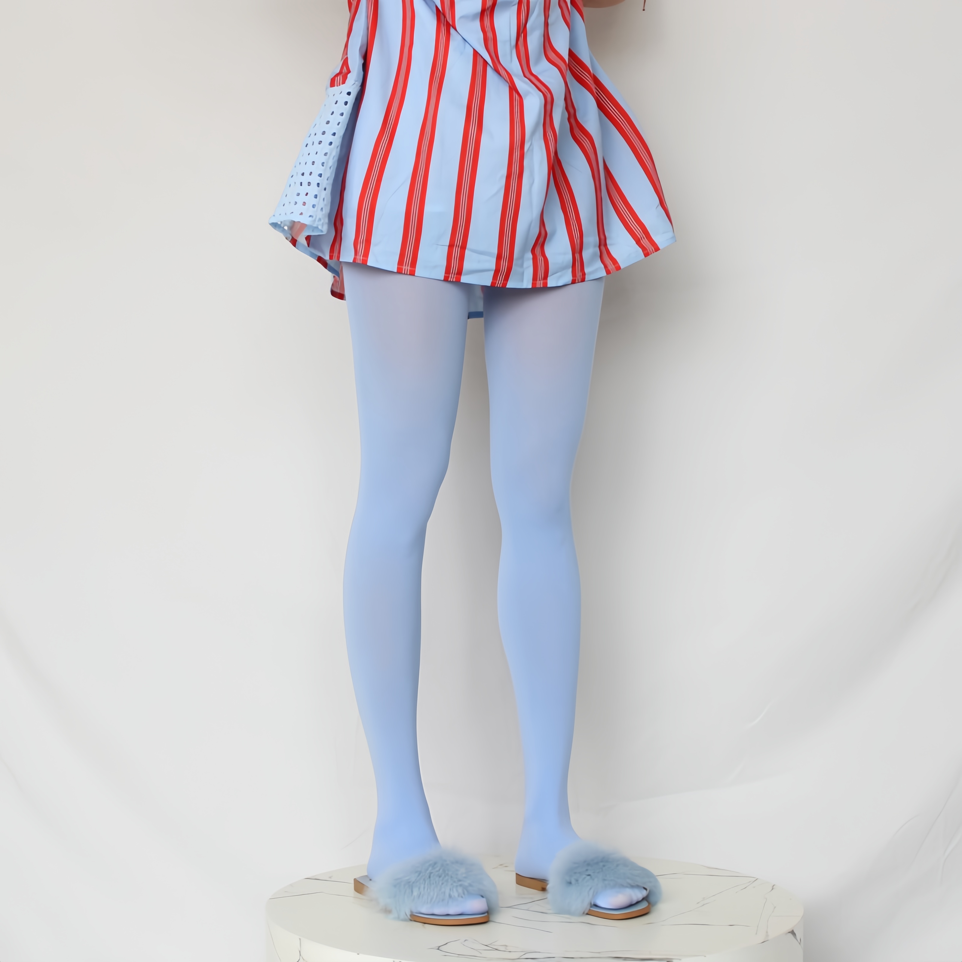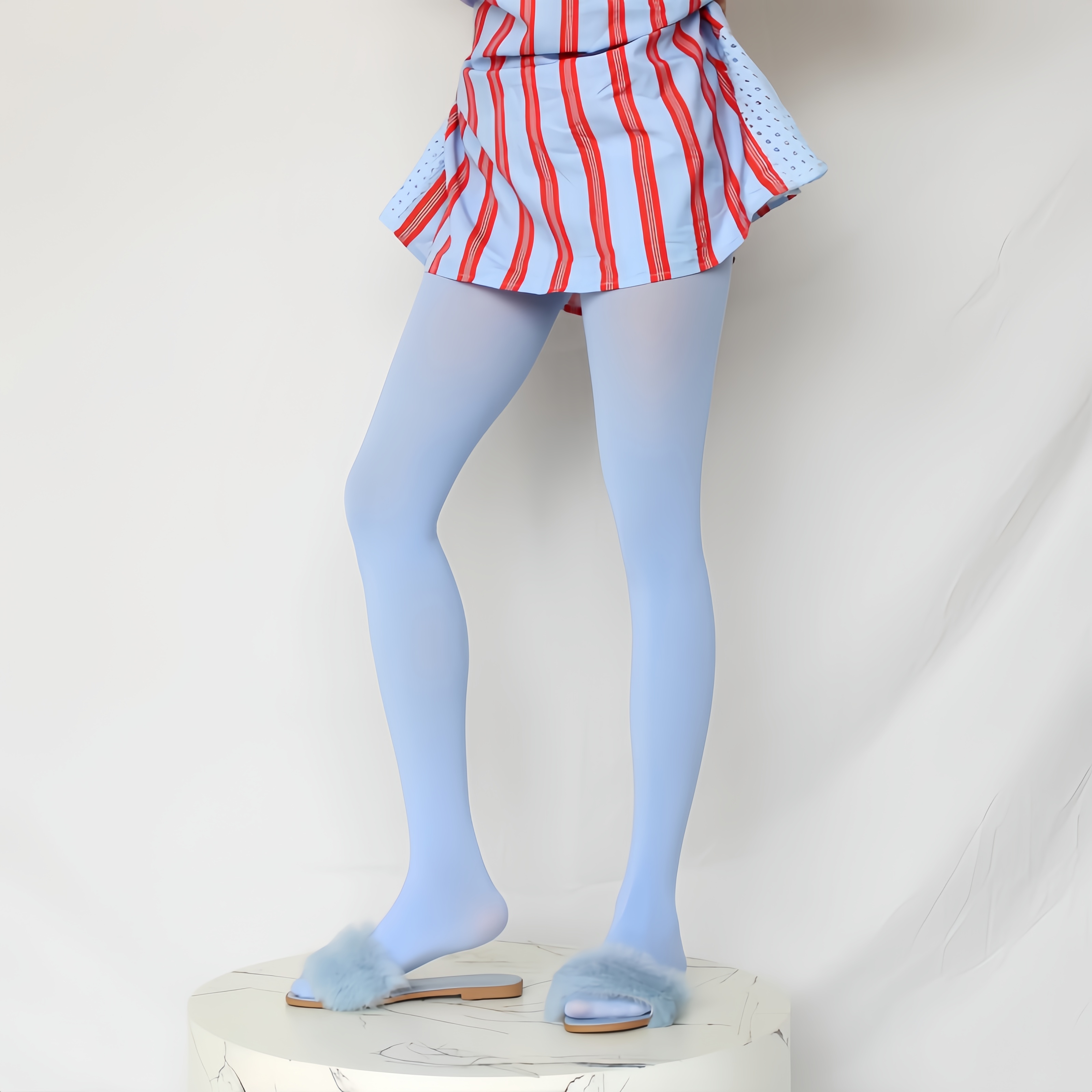 80D薄款小清新浅蓝色美腿连裤袜