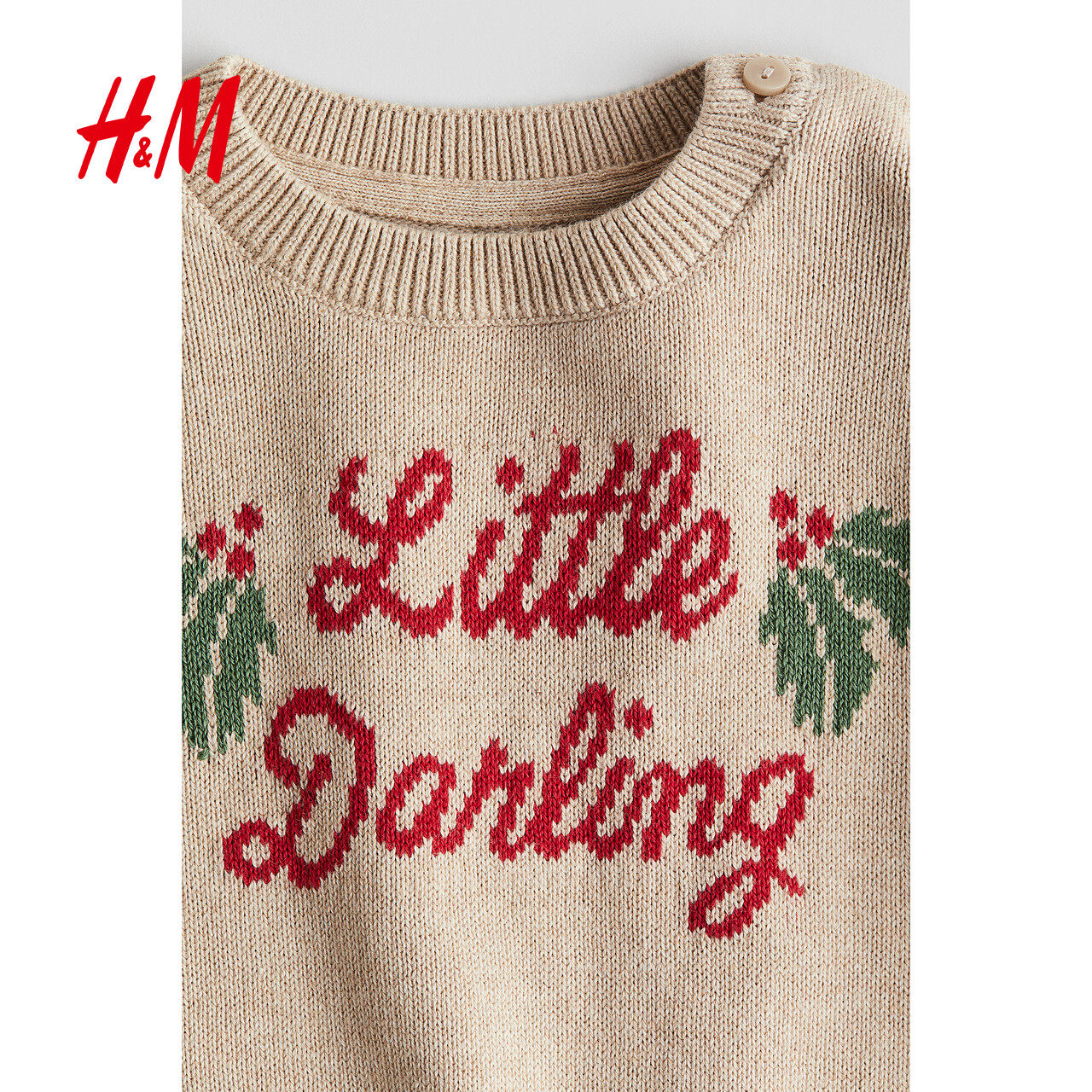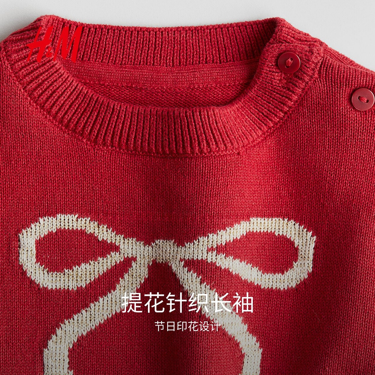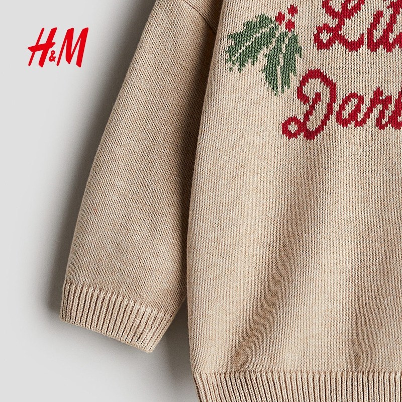 HM童装女婴毛衣冬季内搭红色新年提花圆领长袖套头针织衫1239905