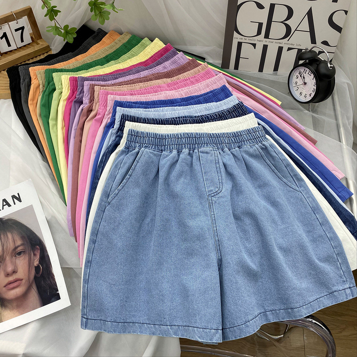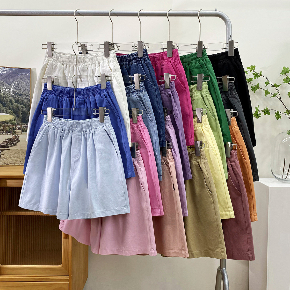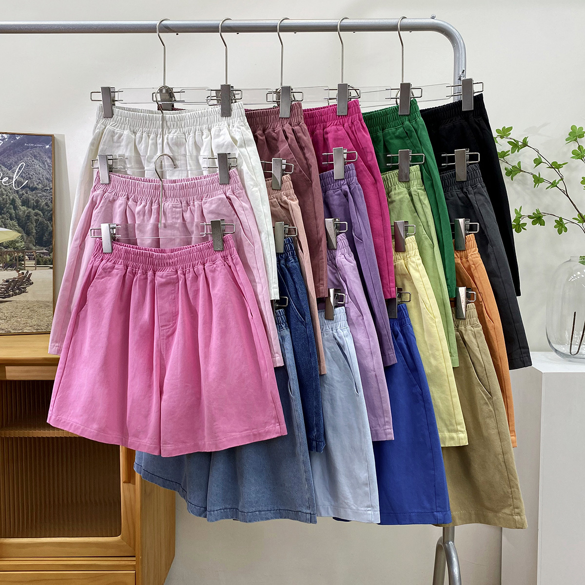 松紧高腰洗水棉多巴胺粉色阔腿短裤女夏宽松休闲百搭a字运动热裤