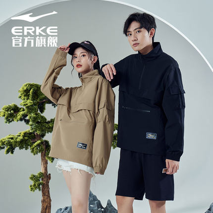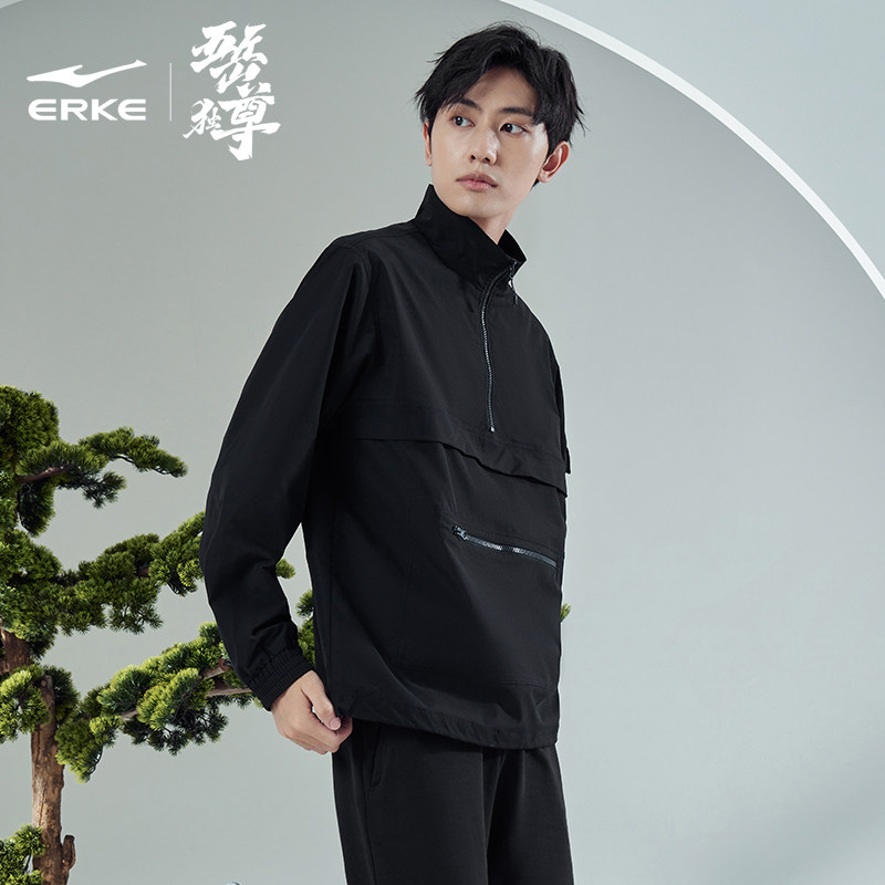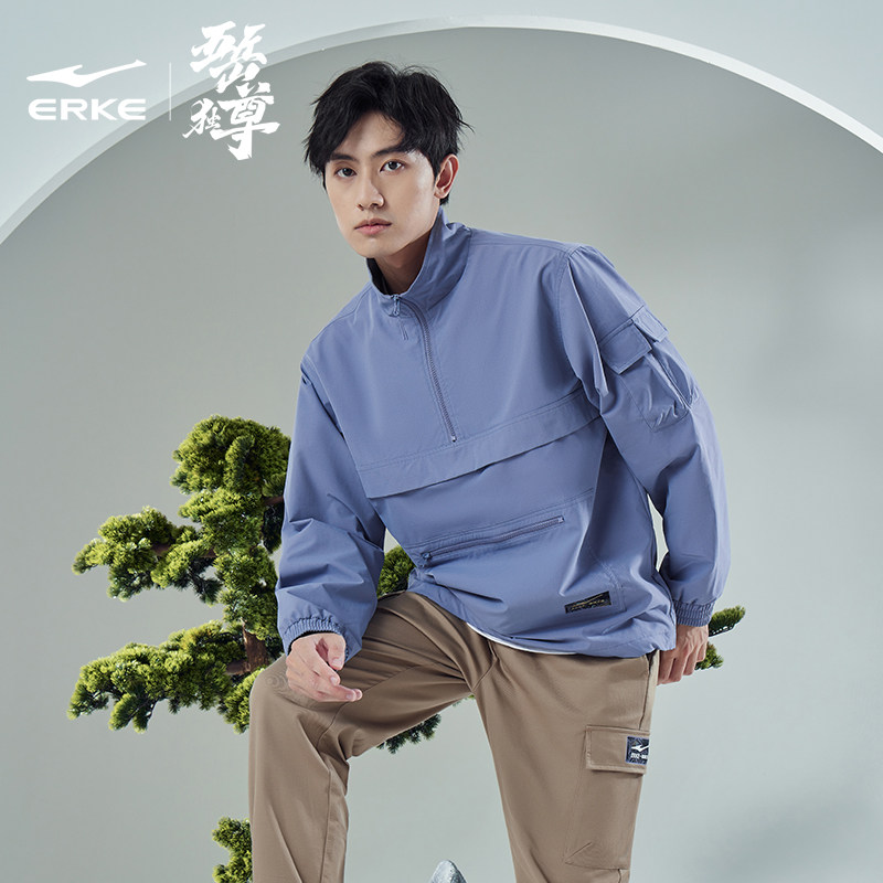 伍岳独尊丨鸿星尔克2024秋季新款男士运动国潮宽松风衣梭织上衣男