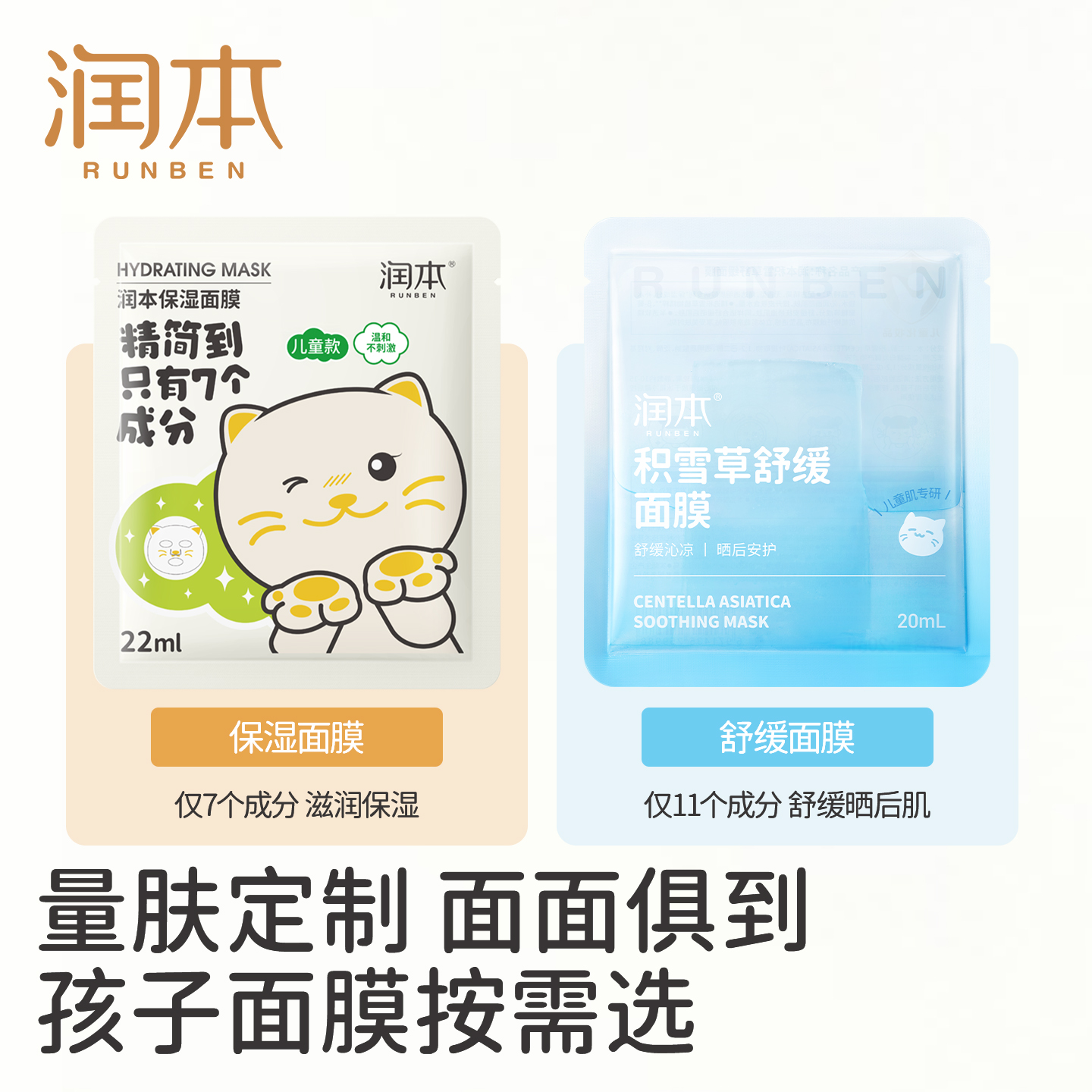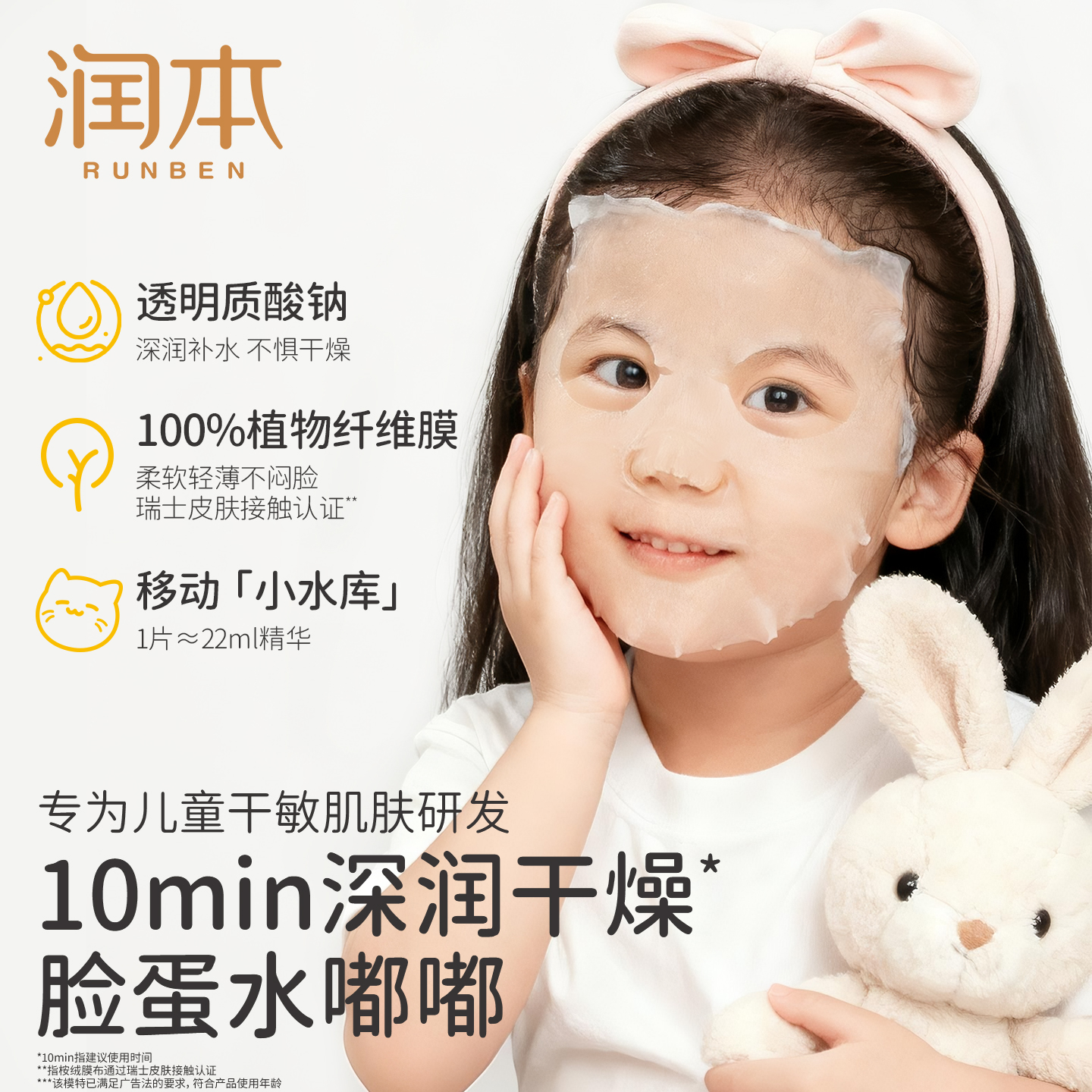 润本儿童面膜女孩宝宝专用6到12岁小朋友晒后舒缓补水保湿男孩子