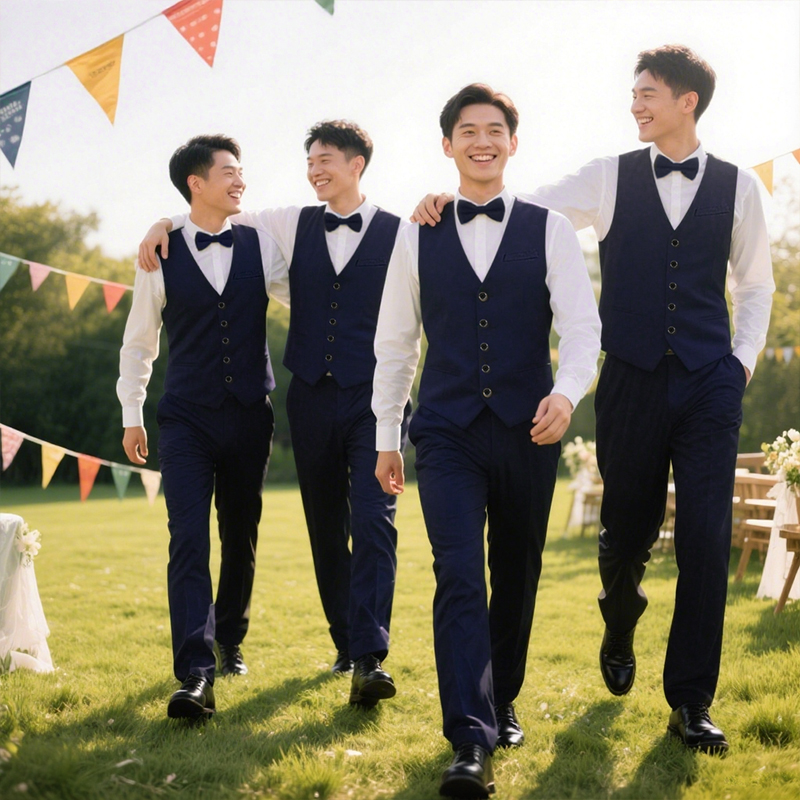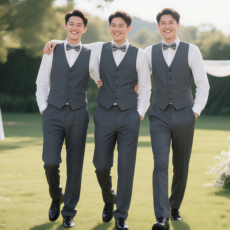 罗蒙男士西装马甲套装2025秋季新款商务休闲工装结婚伴郎团礼服NX