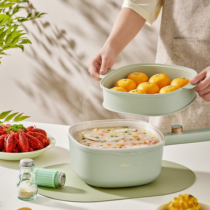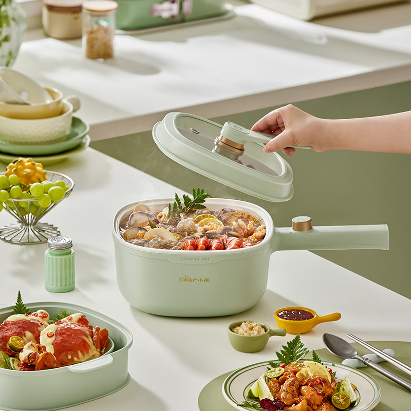 小熊电煮锅小型宿舍家用电火锅多功能电炒锅陶瓷小电锅不粘锅蒸锅