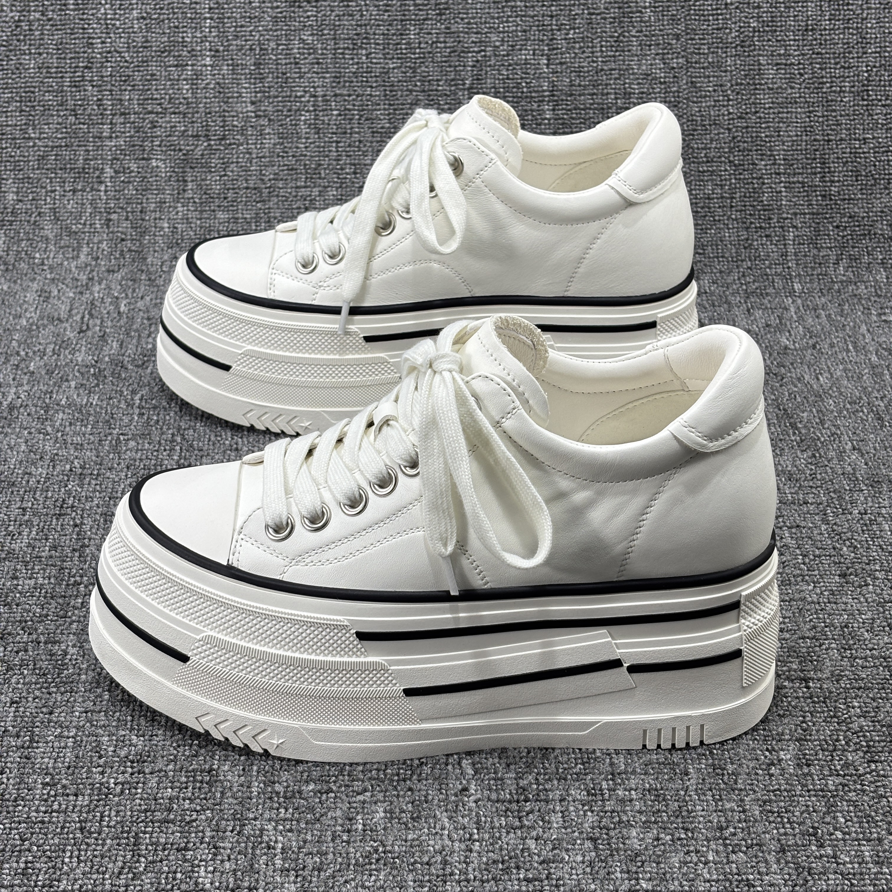 欧洲站2025年秋季新款真皮厚底松糕鞋爆款内增高百搭小白鞋女欧货