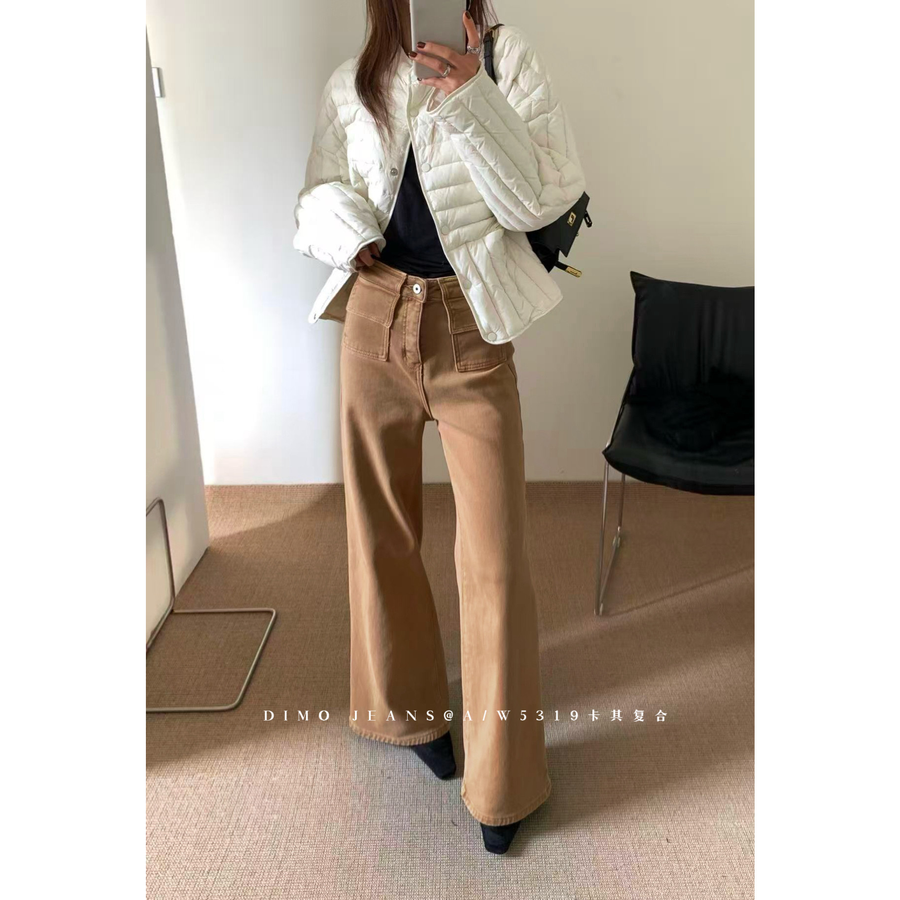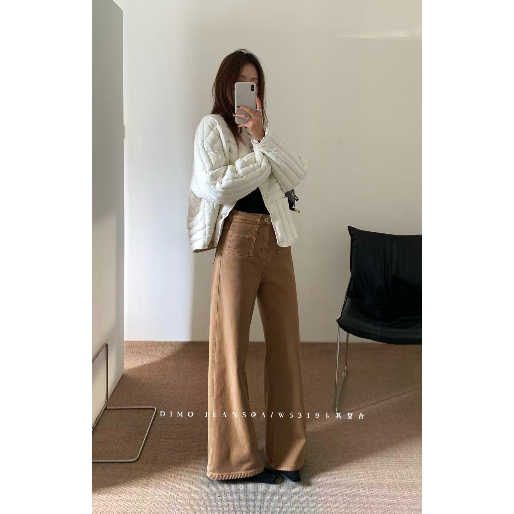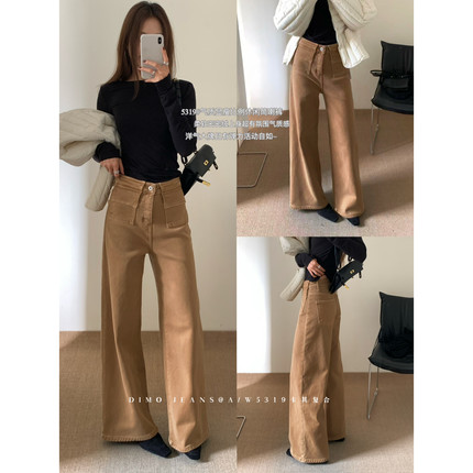 DIMO-时气质显瘦比例休闲筒喇裤加厚加绒牛仔裤YS1-5319卡其植绒