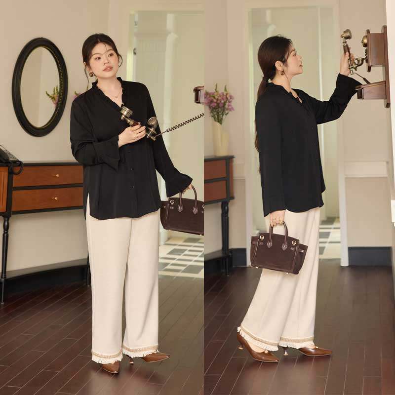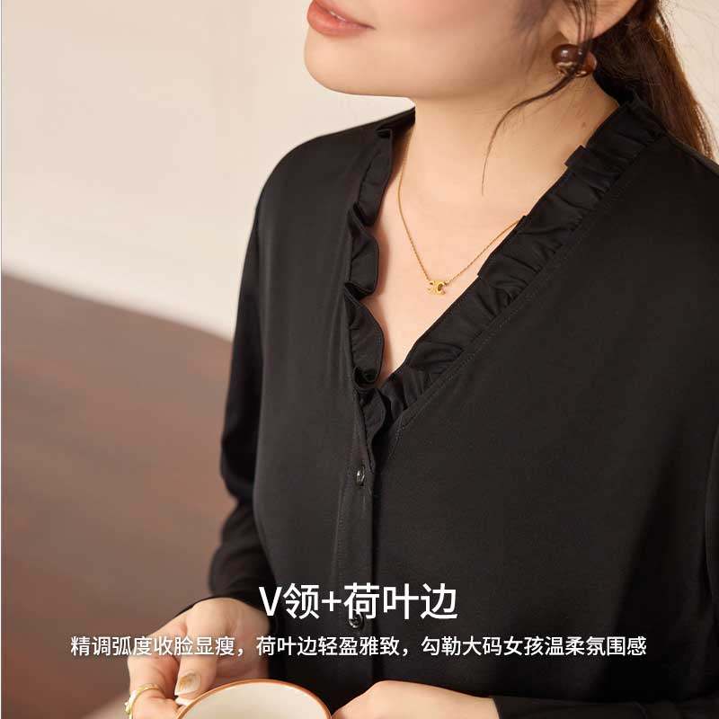 美丽客栈高端大码衬衫女胖mm洋气轻奢高级感荷叶边显瘦气质上衣