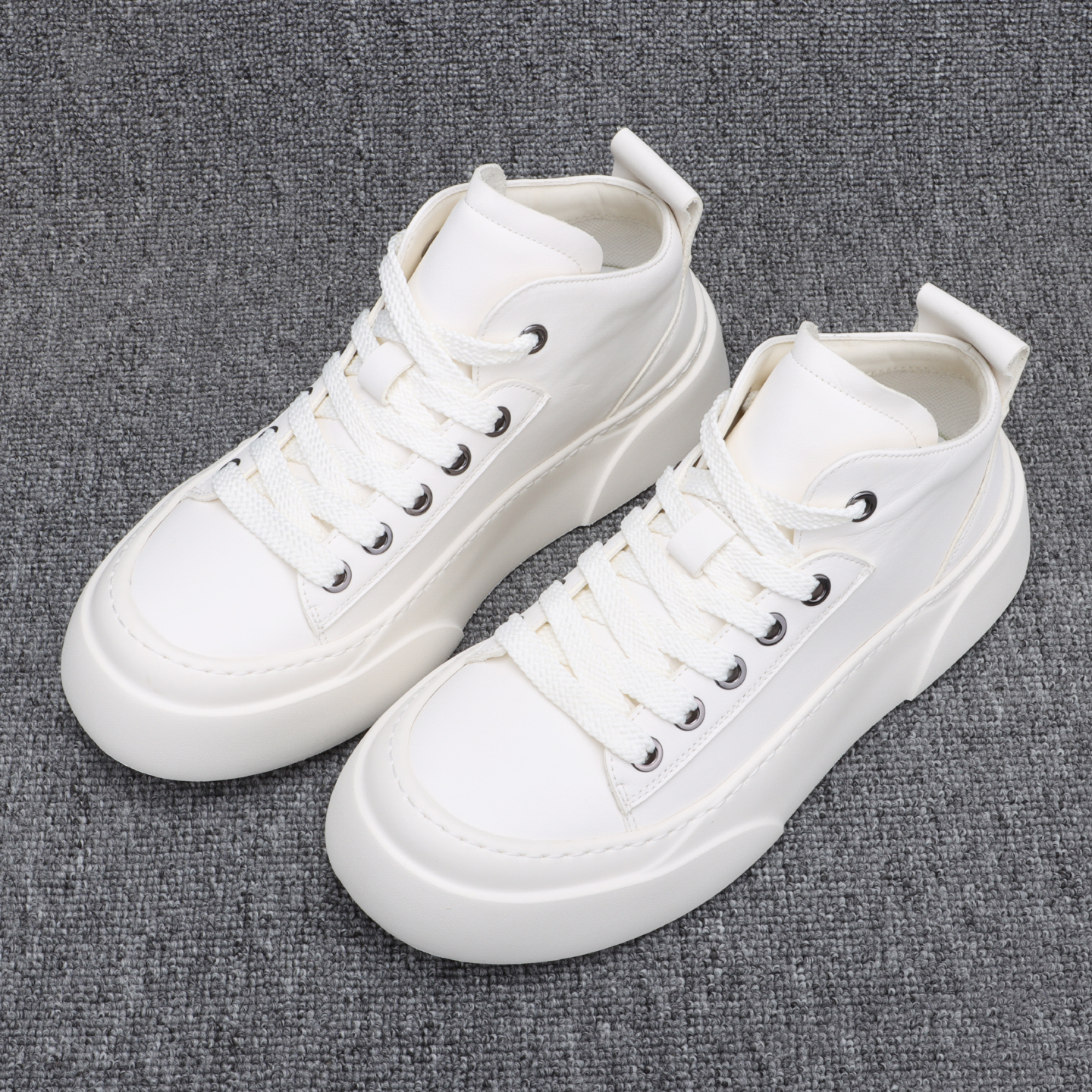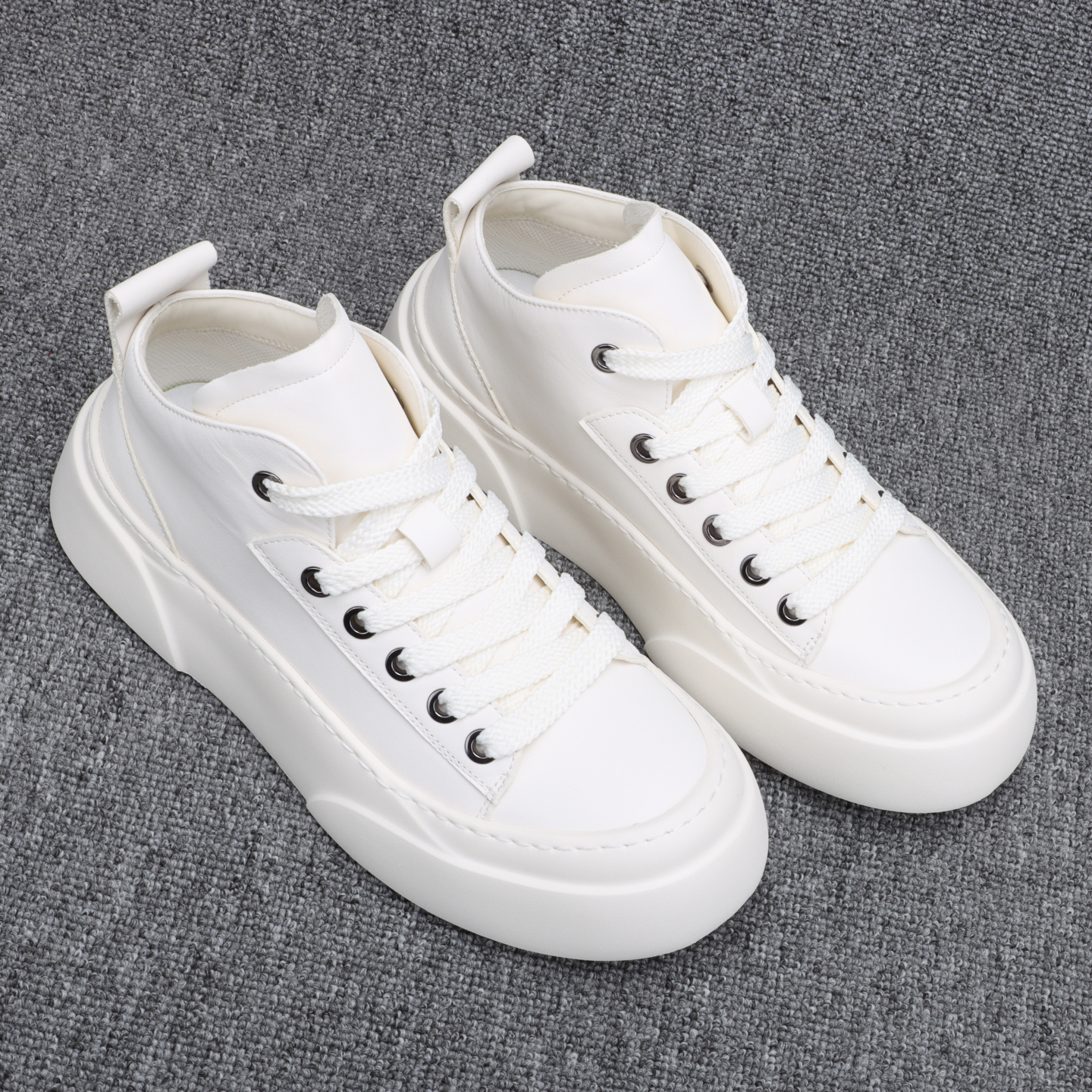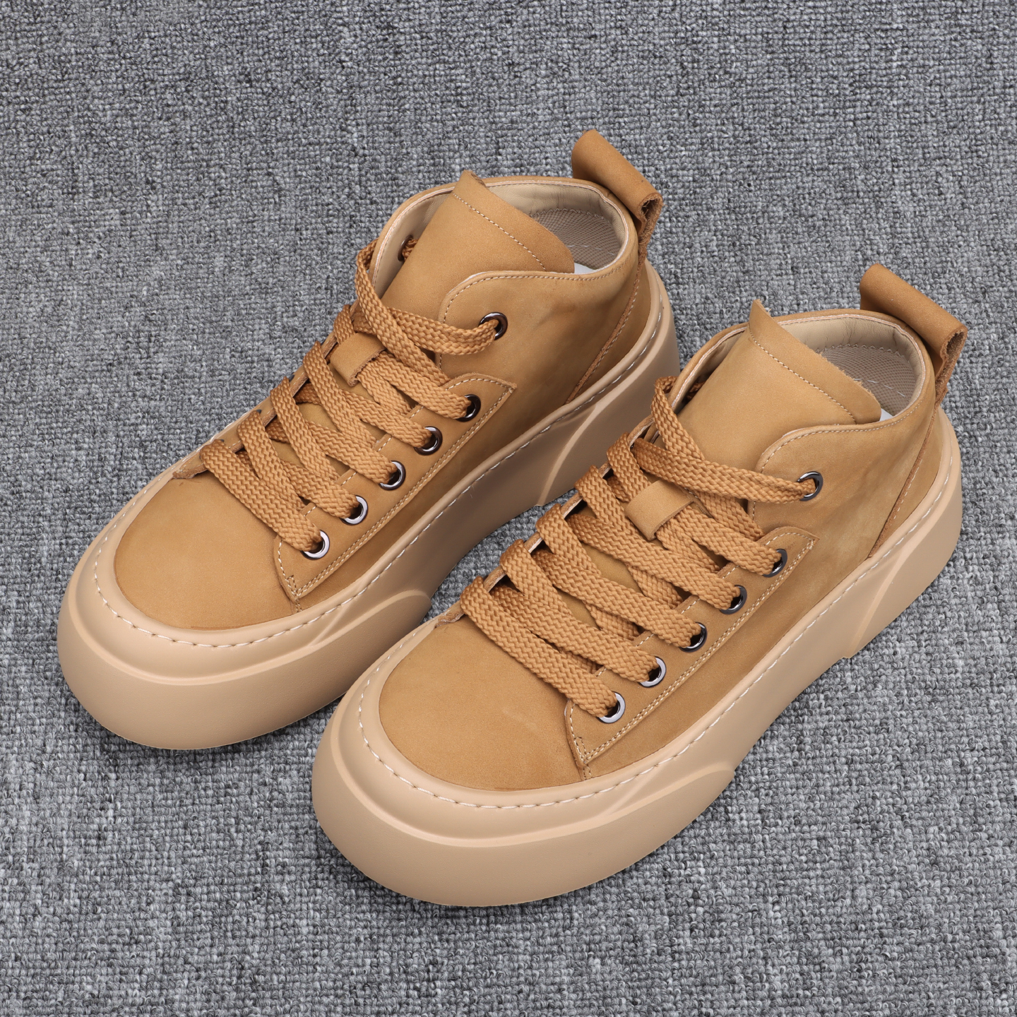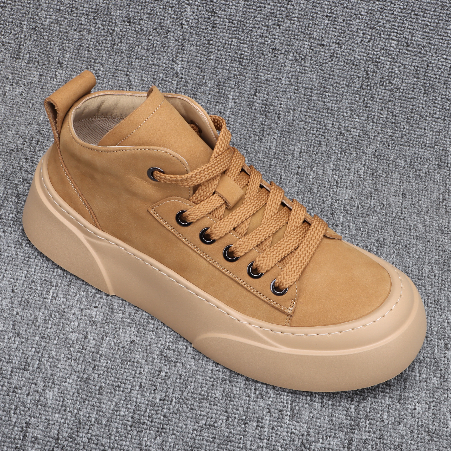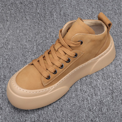 秋冬新款轻便厚底高帮鞋韩版头层牛皮透气工装板鞋时尚潮流男鞋子