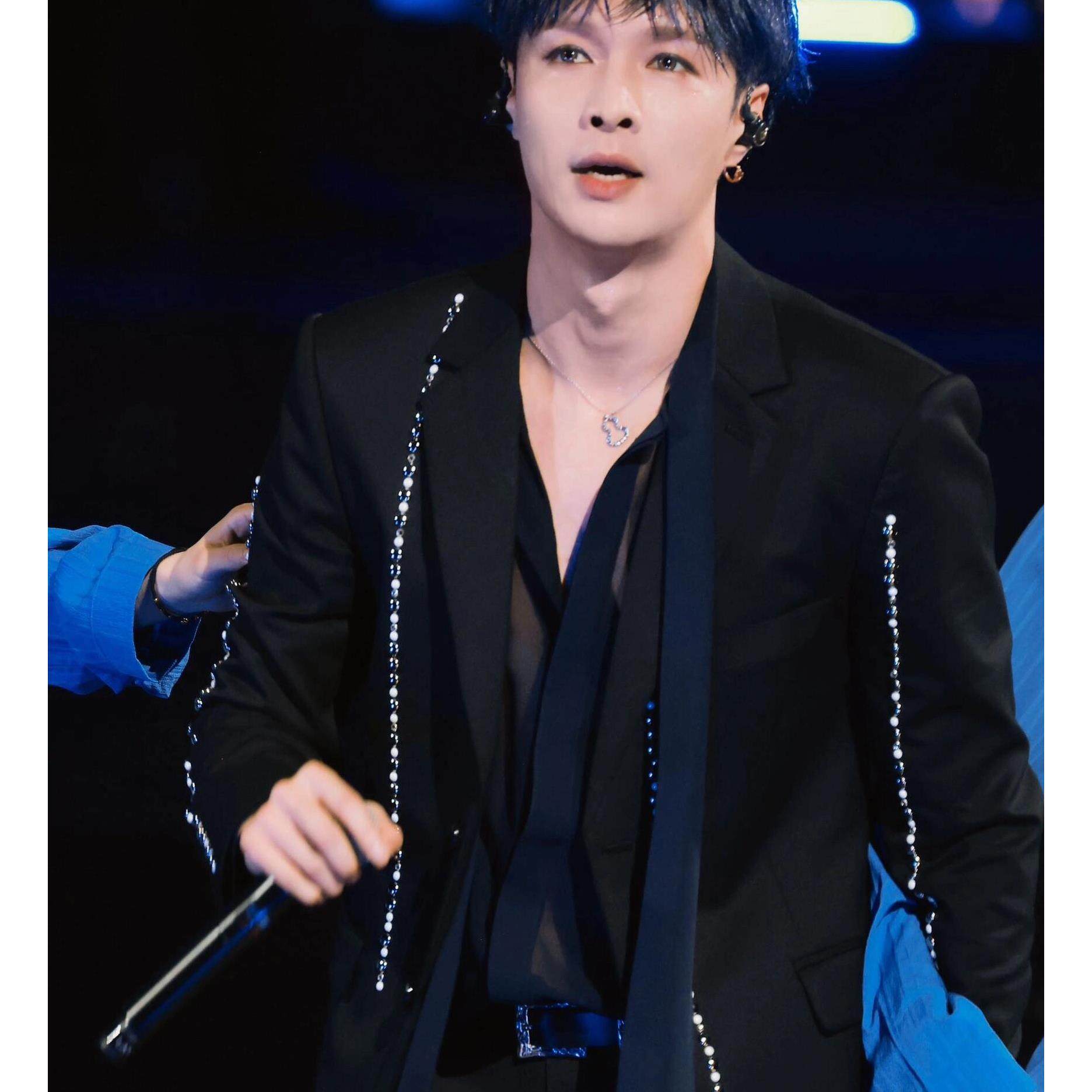 欧购张艺兴同款手工串珠链条西装外套男士潮流高级感百搭痞帅西服