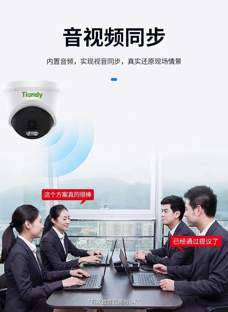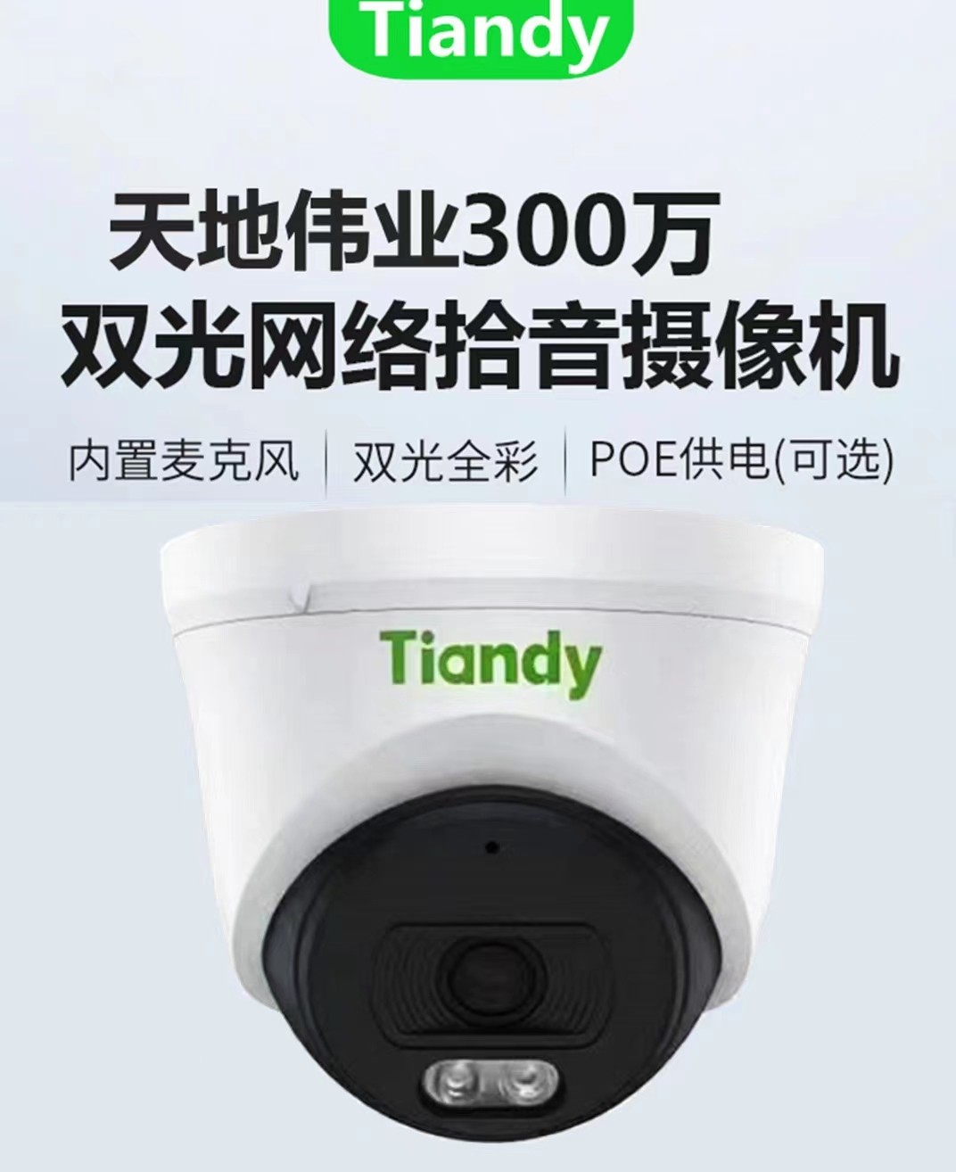 天地伟业tiandy半球摄像机300万-400万高清双光日夜全彩POE供电