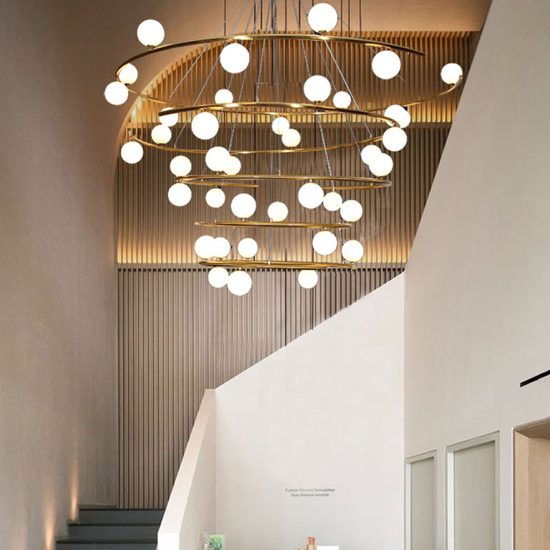 复式楼大吊灯现代简约中空t创意挑高跃层楼梯轻奢别墅客厅大厅灯