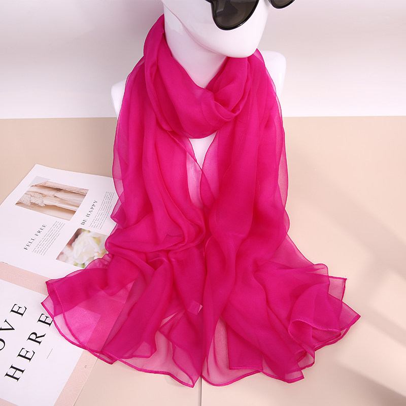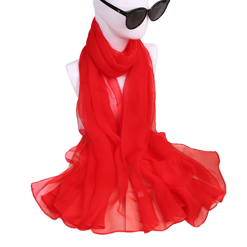 红色真丝丝巾女春秋季百搭桑蚕丝围巾大红中国红纱巾薄长款本命年