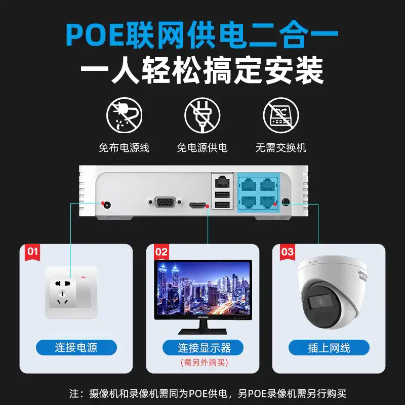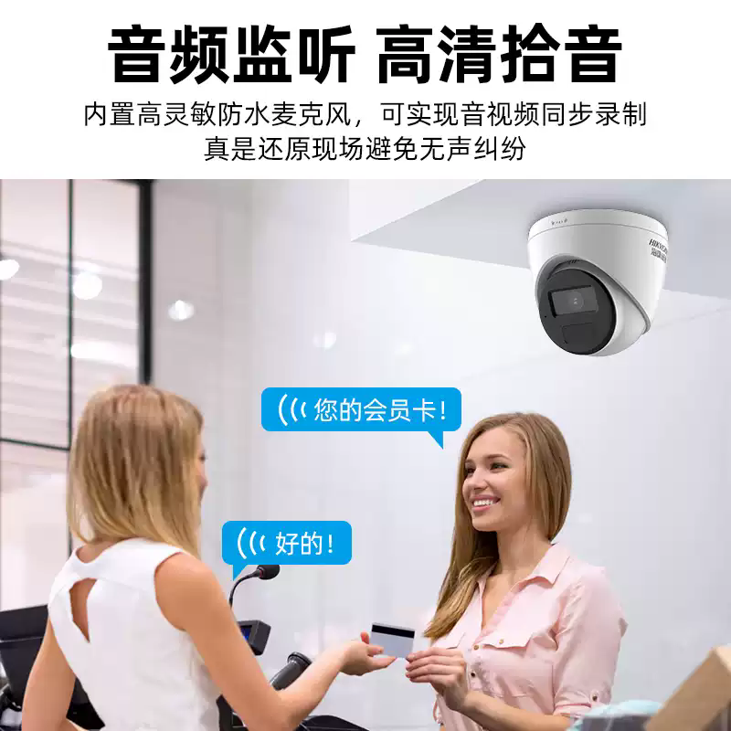 海康威视200/300/400万监控摄像头半球手机远程POE录音高清夜视