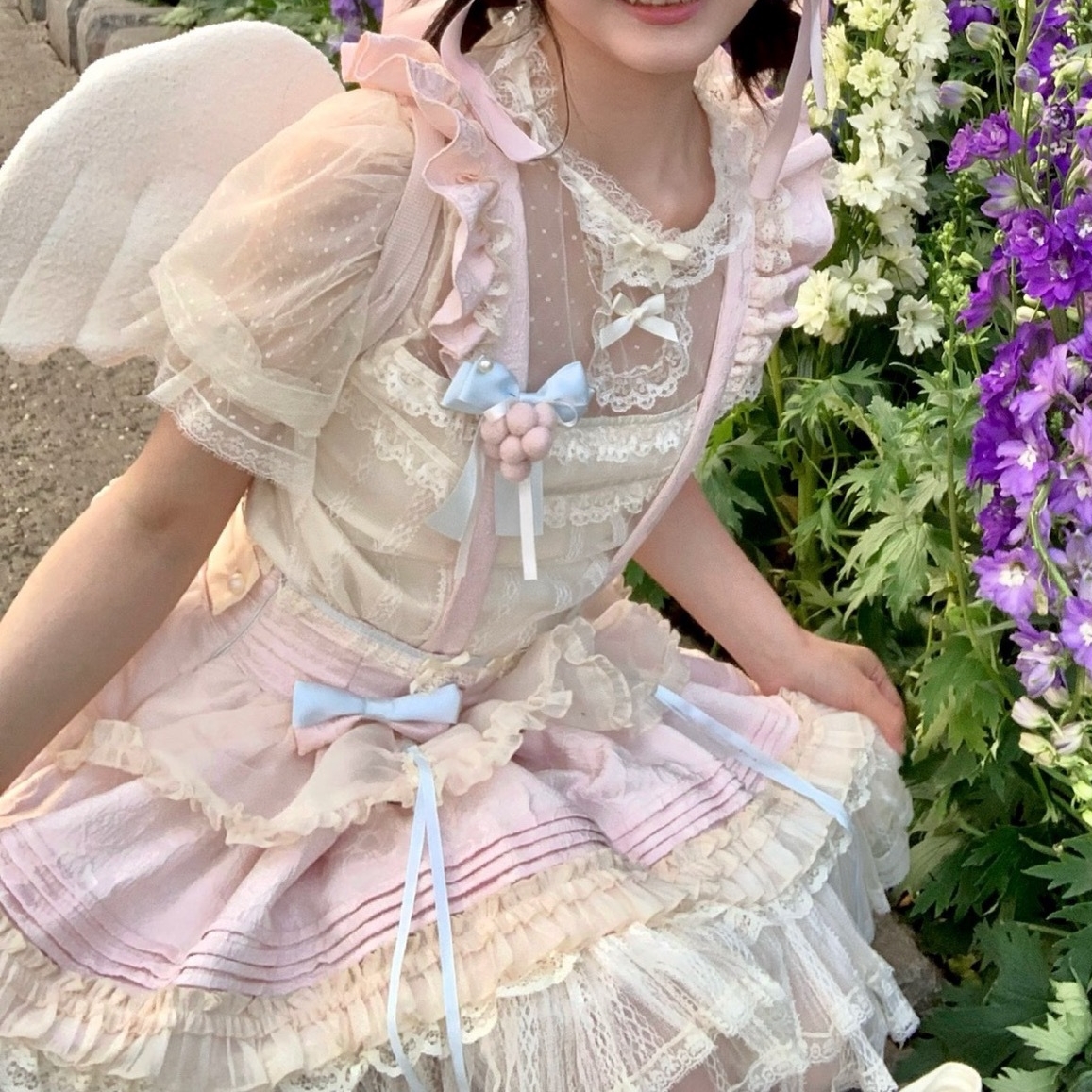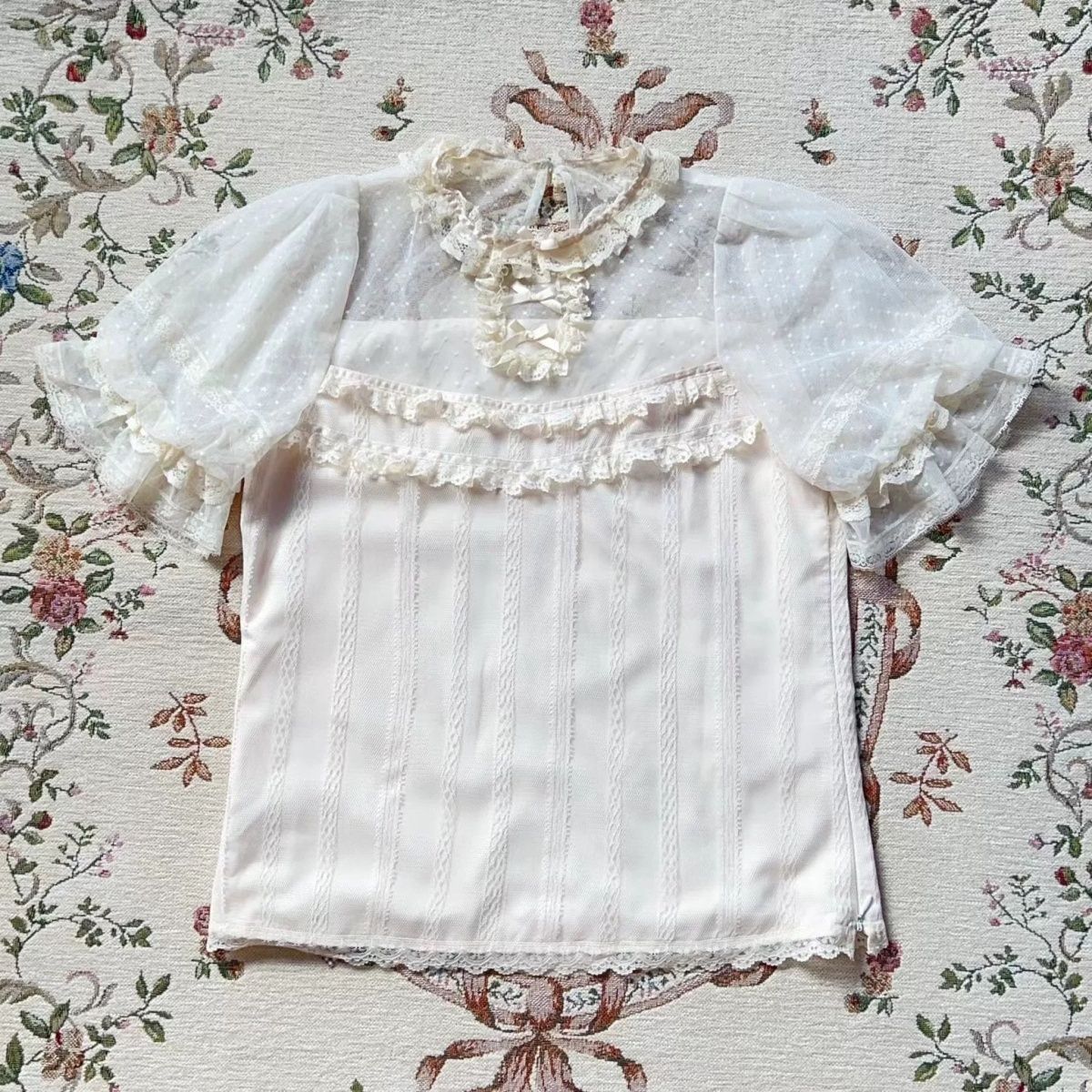 Lolita内搭网纱薄蕾丝短袖百搭重工设计感打底衫夏季洛丽塔上衣