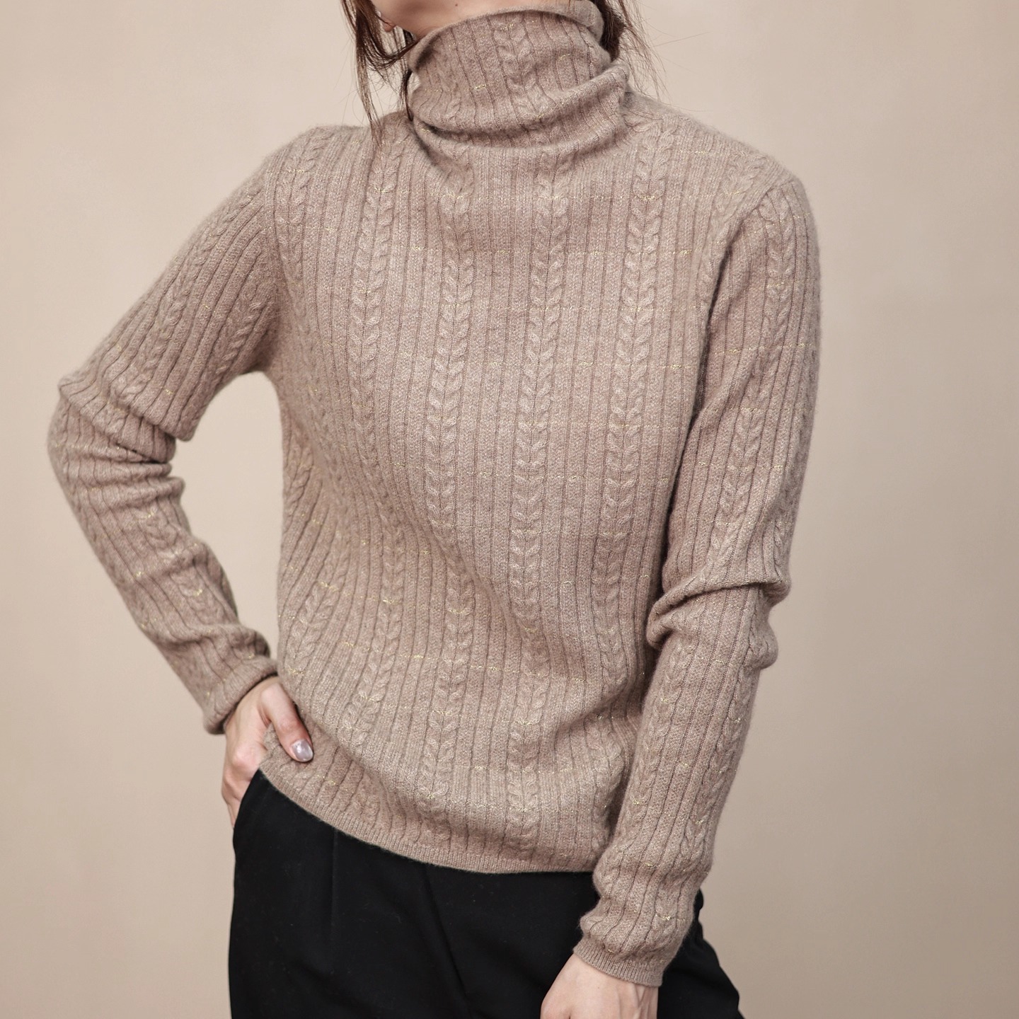 新款100山羊绒奢贵山羊绒小香风金线时尚堆堆领毛衣打底衫女秋冬