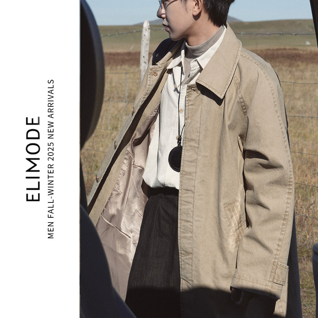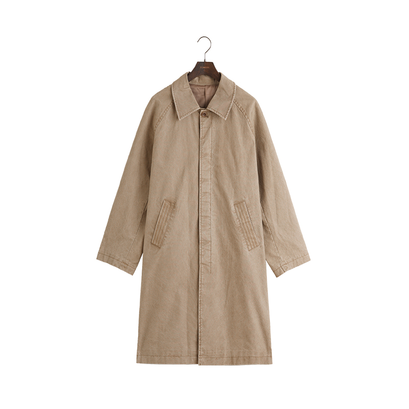 ELI【草垛】日系复古水洗纯棉牛仔巴尔马肯卡其色廓形风衣秋冬款