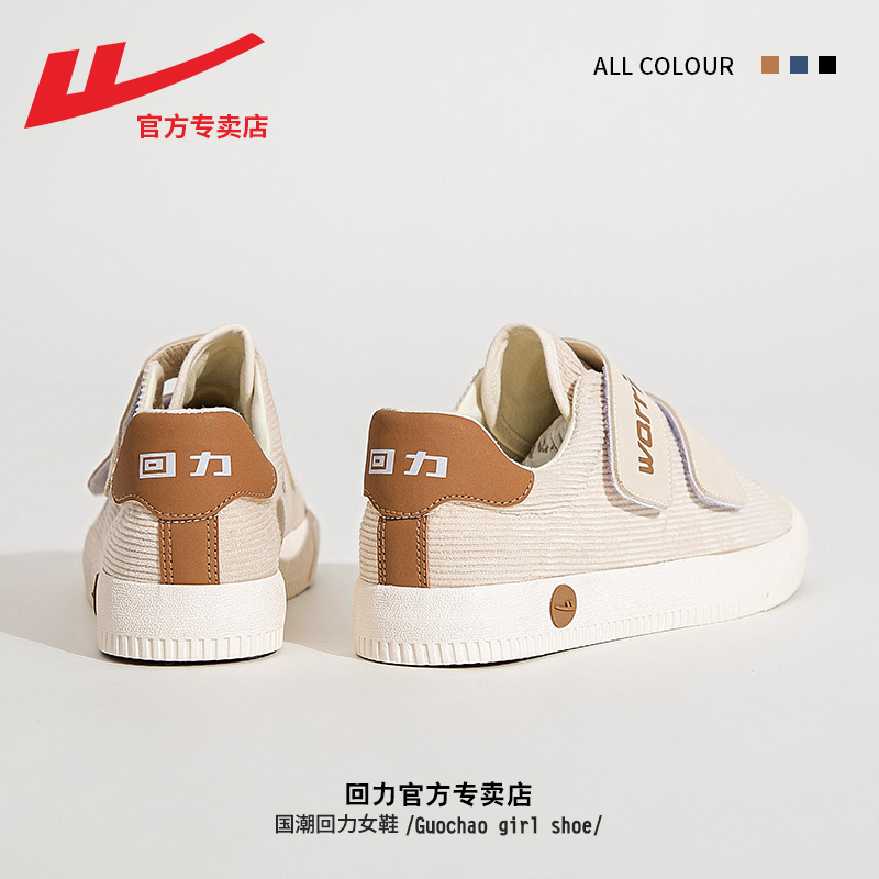 回力国潮女鞋帆布鞋女小众设计鞋子学生百搭休闲魔术贴板鞋ins潮
