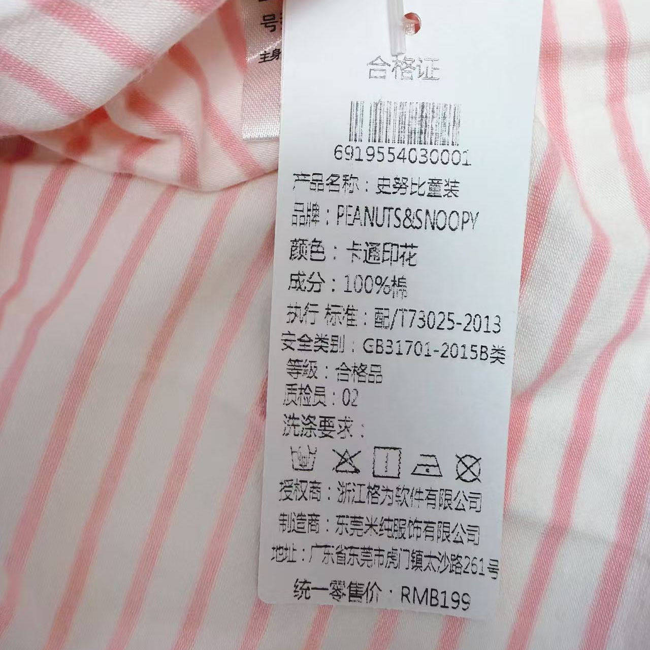【清仓】Snoopy史努比儿童春秋粉色条纹印花T恤女童微瑕