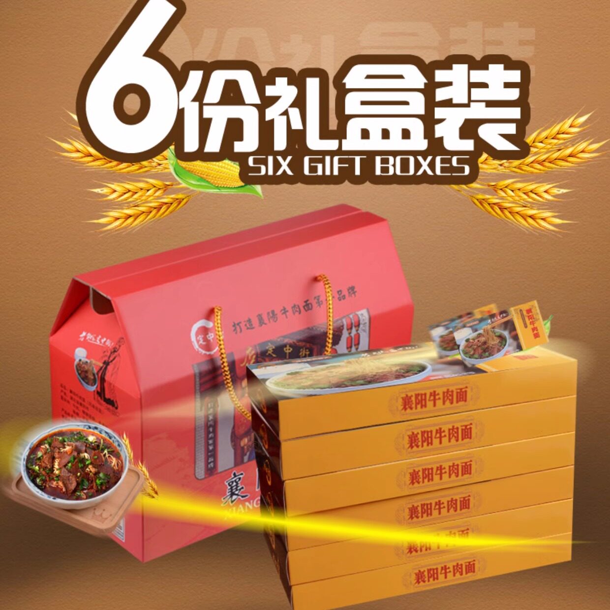 定中街地道美食6份礼盒装包邮牛肉面牛杂面正宗襄阳味道厂家直销