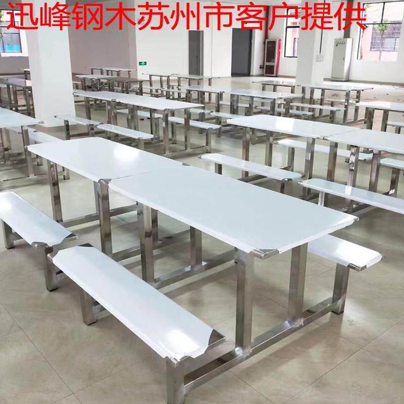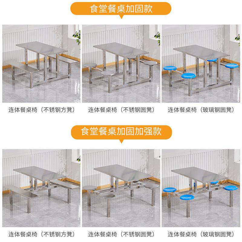 不锈钢食堂餐桌椅连体学校学生员工厂工地饭堂4人6人8人快餐组合