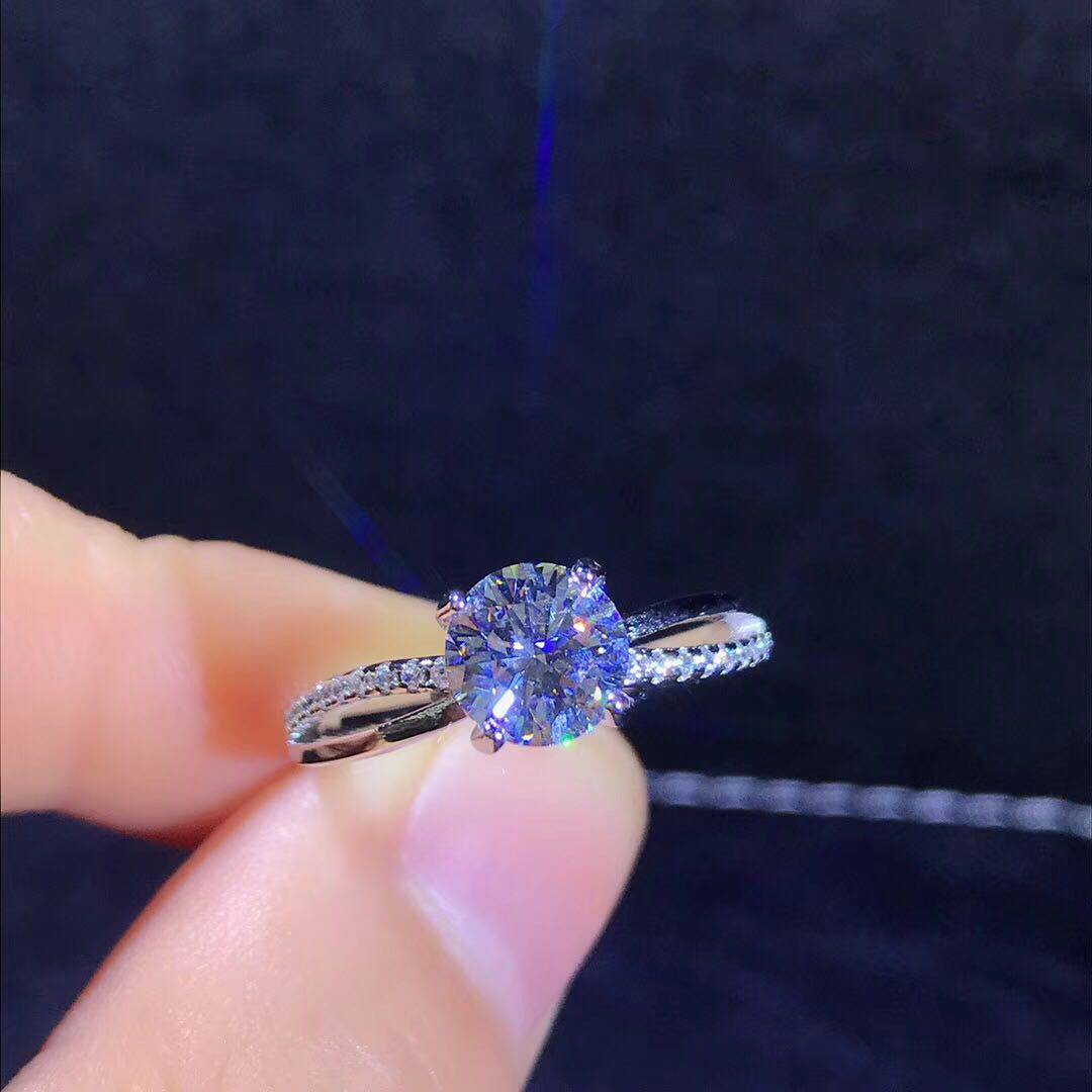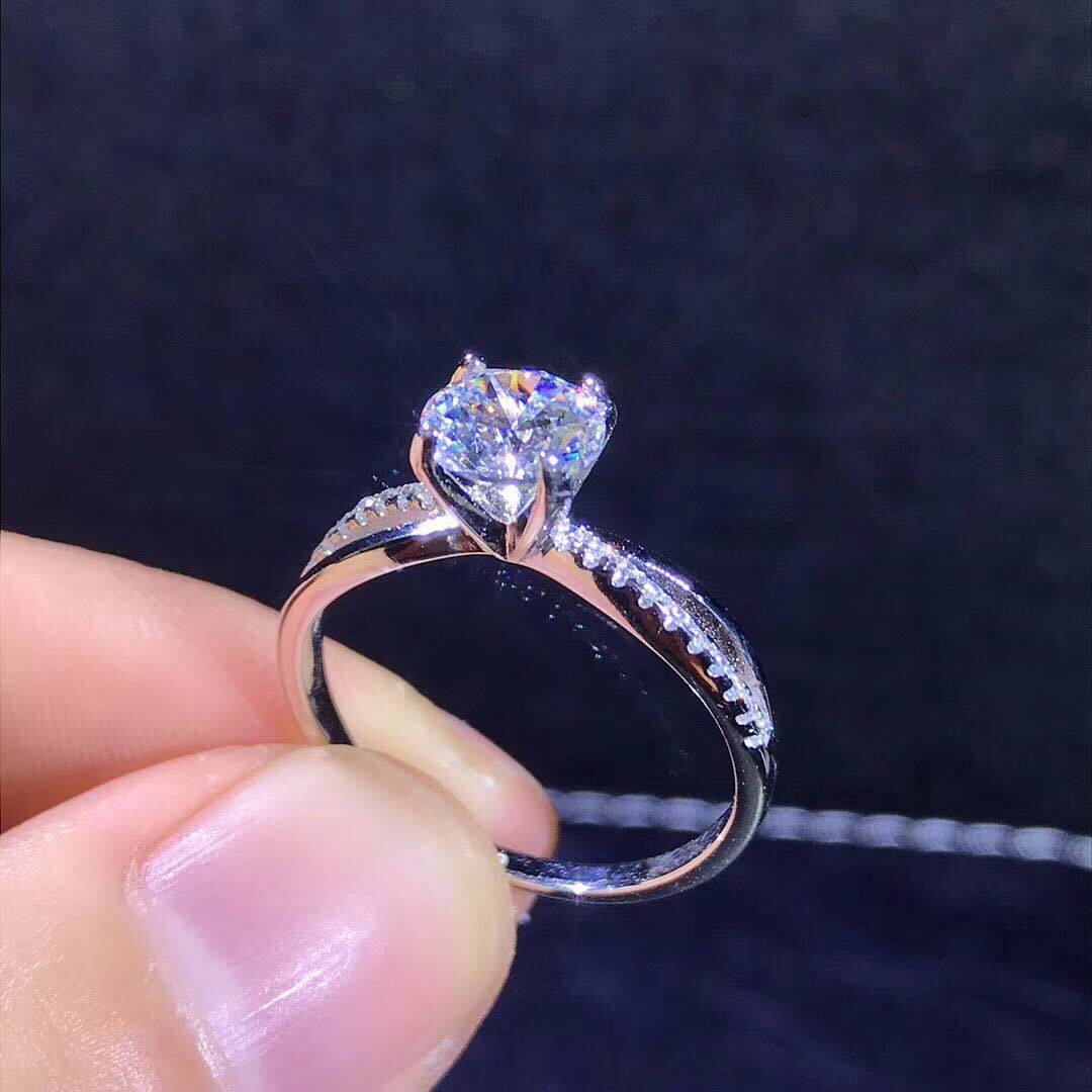 女朋友结婚钻戒八心八箭莫桑钻硞石镶钻镀白金甜美戒指开口可调节