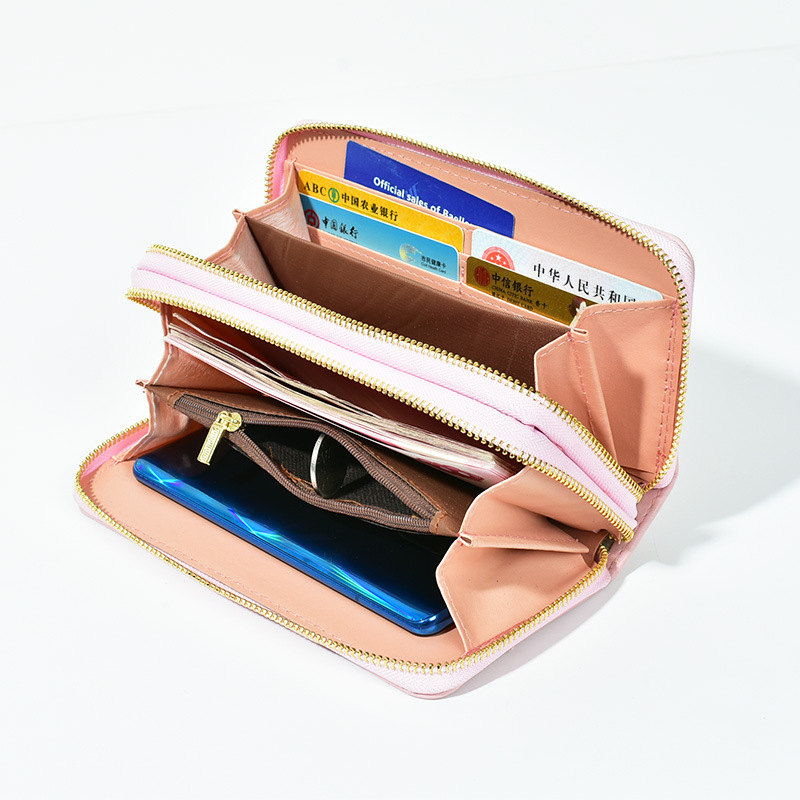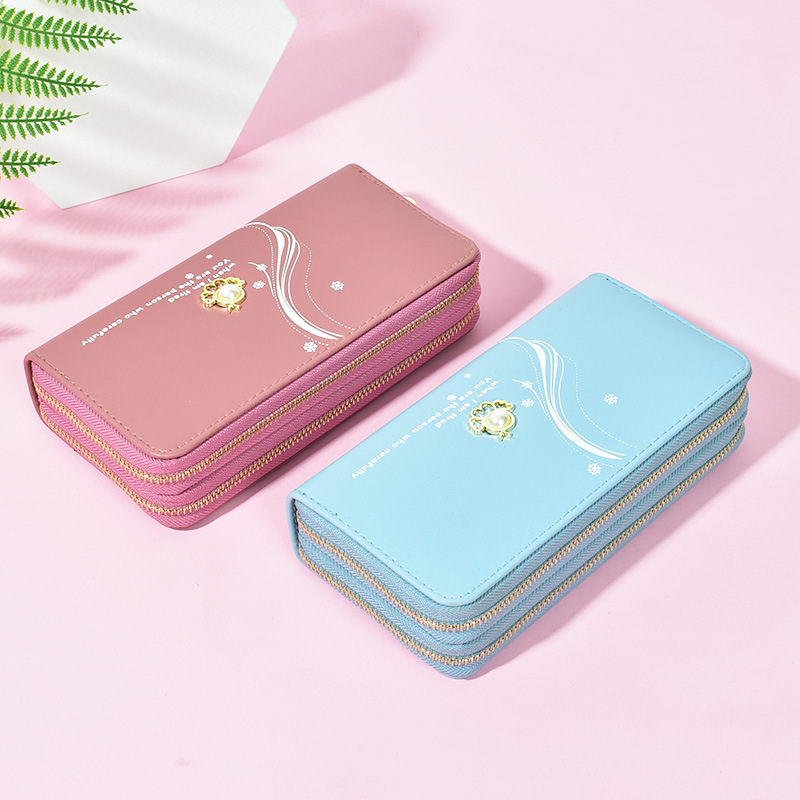 日本品质双拉链钱包女士长款大容量手拿包学生双层钱夹韩版珍珠零