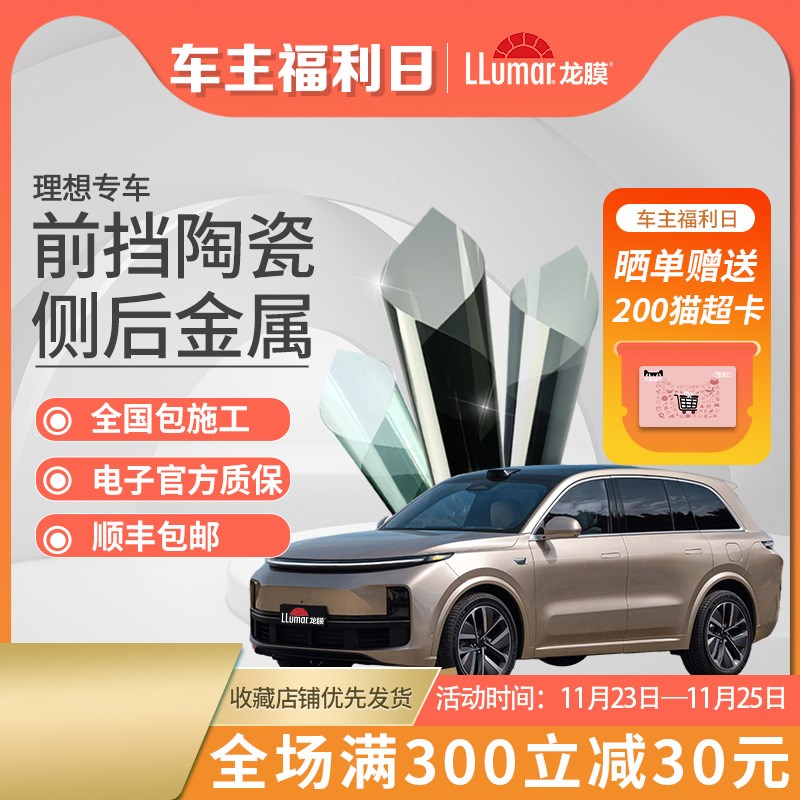 龙膜汽车贴膜理想L8L9专车专用全车窗玻璃膜防晒隔热太阳膜