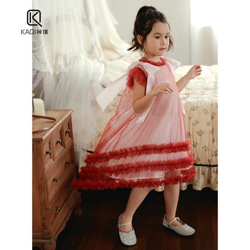 【琪童装】灵动春夏季女童公主仙女网纱蝴蝶结背心连衣裙90097