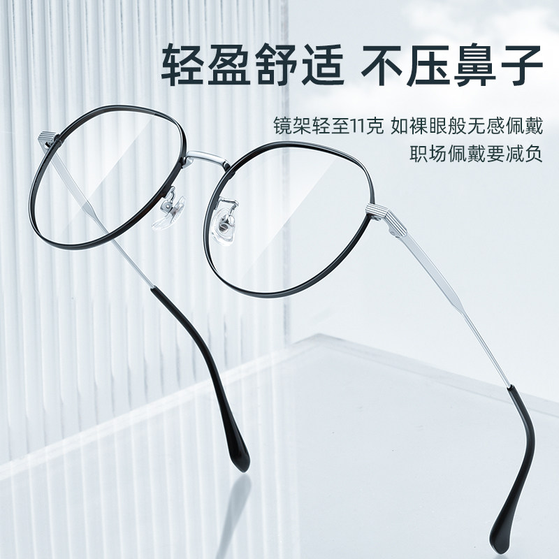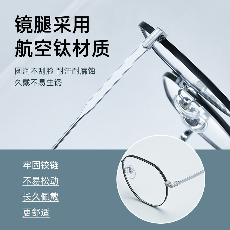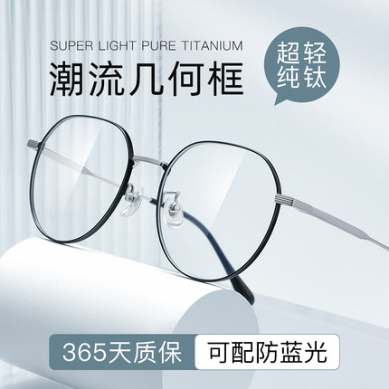 抗防蓝光辐射近视眼镜男款可配度数大脸变色护眼超轻纯钛眼睛框女