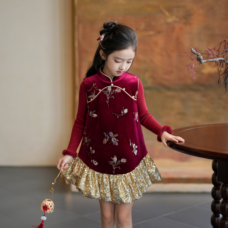 女童连衣裙2025秋冬新款儿童汉服裙国风背心裙新中式小女孩旗袍裙