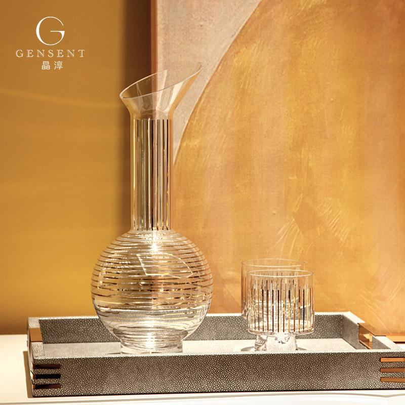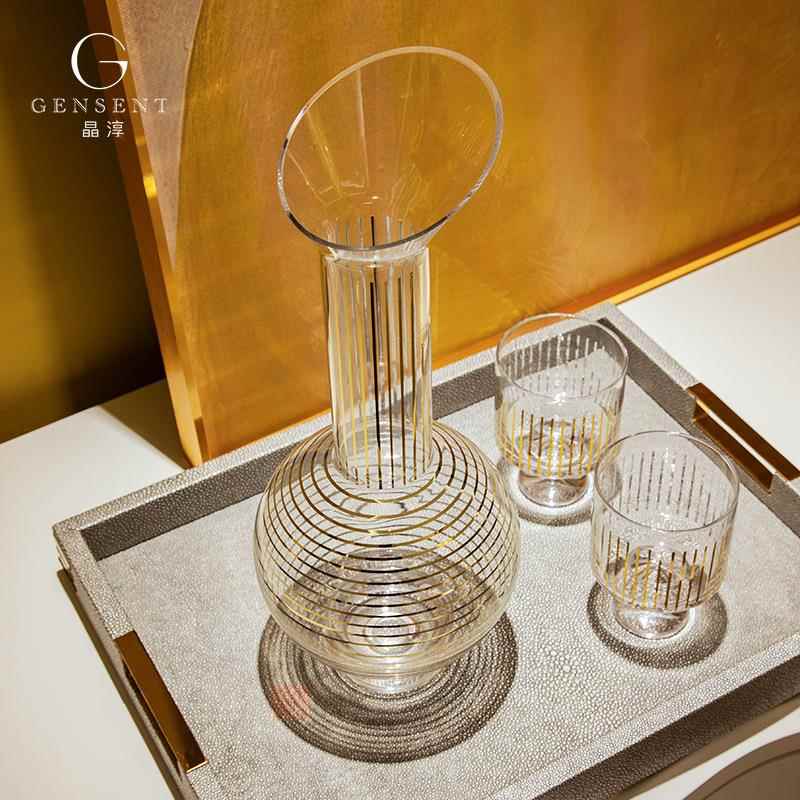 晶淳一壶两杯酒具套装金边银边组合装酒柜餐桌软装摆件居家摆件