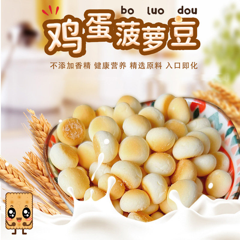 青食鸡蛋菠萝豆饼干80g营养磨牙奶豆小馒头趣味办公室休闲零食品