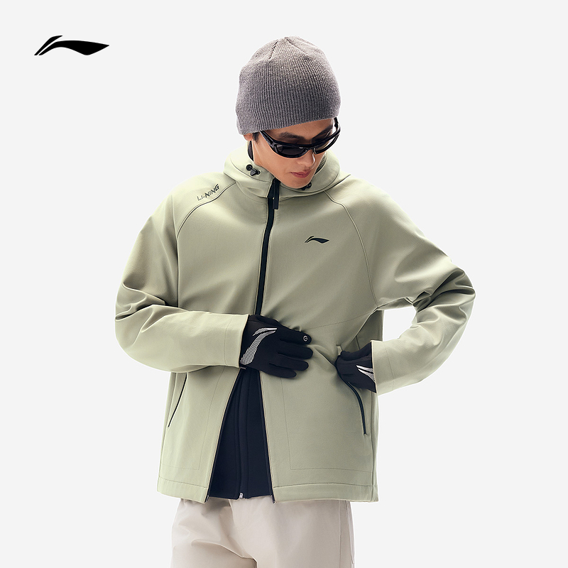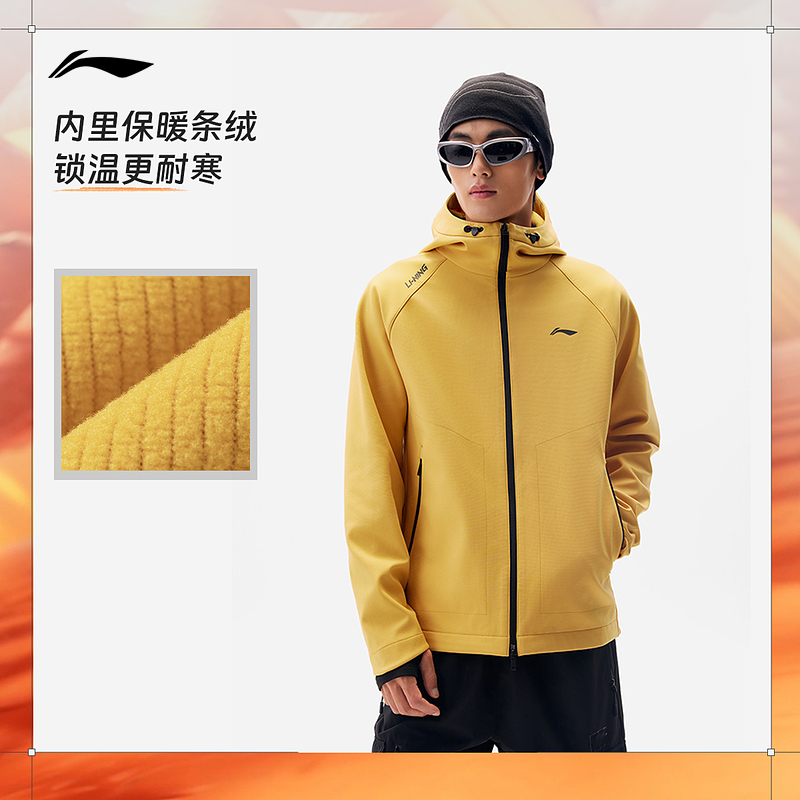 李宁风衣 男子秋冬加绒保暖防泼水防风连帽跑步骑行夹克运动风衣