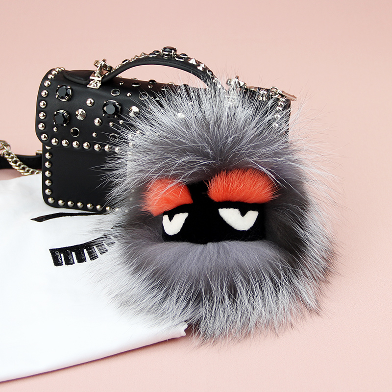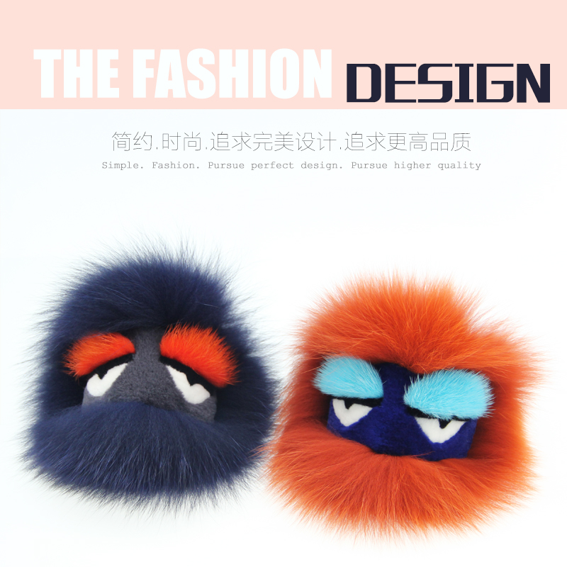 进口狐狸毛玩偶小怪兽挂件毛球包包挂饰毛绒公仔皮草饰品可爱女