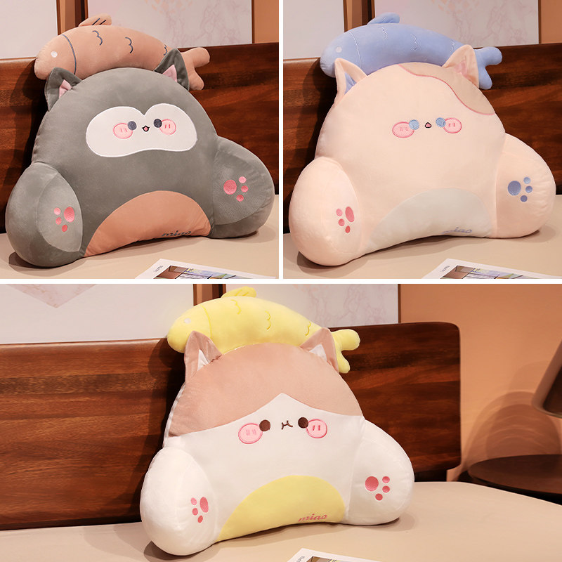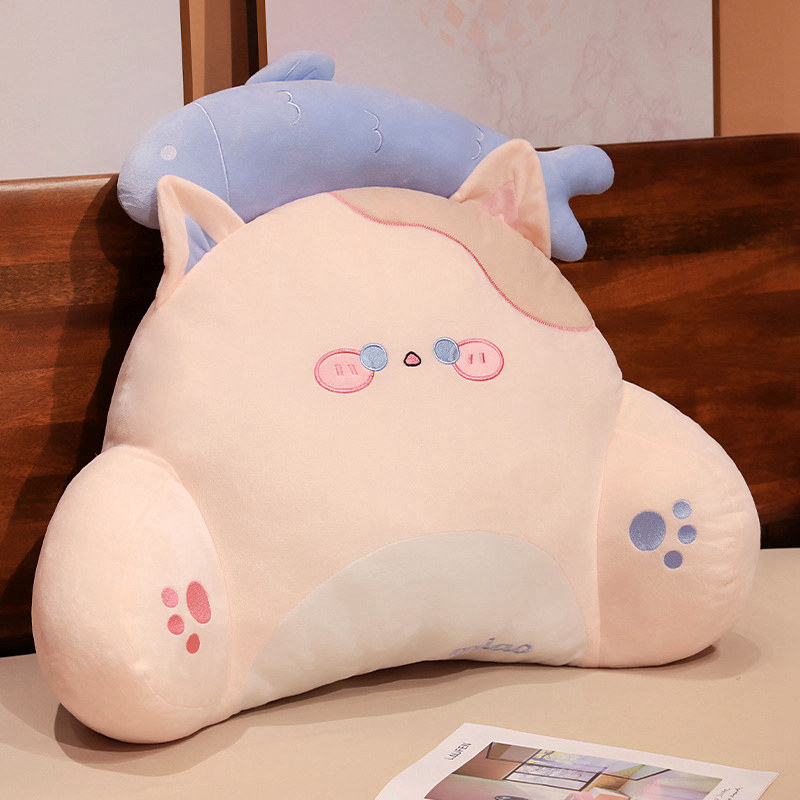 床头软包喵喵鱼靠背床上靠枕看书护腰靠垫沙发抱枕宿舍学生枕头