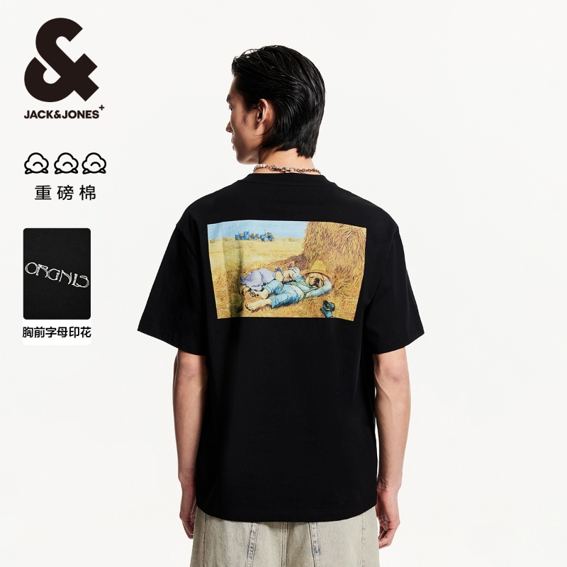 【重磅棉】杰克琼斯男装2025年秋季新款打底法斗印花男士短袖T恤