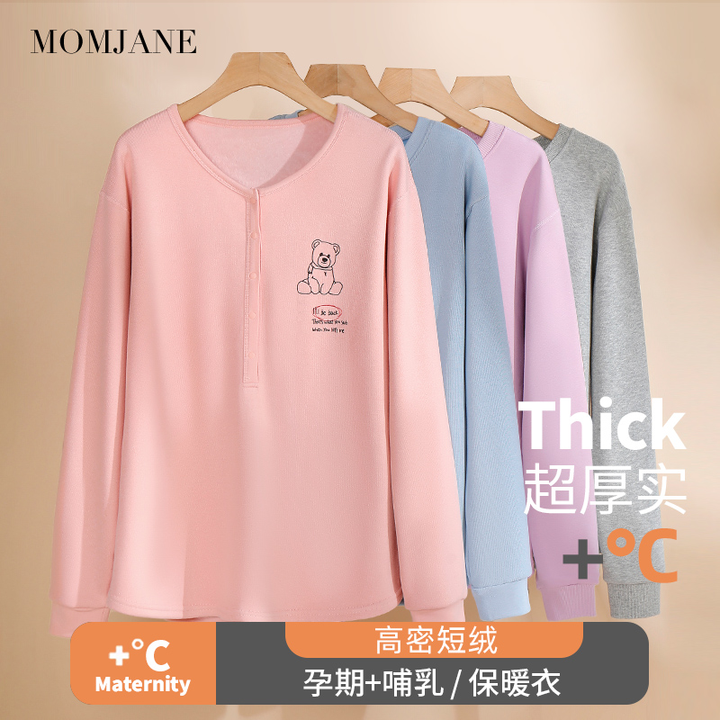 哺乳上衣孕妇产后加绒加厚保暖月子服秋冬季家居服睡衣大码女德绒