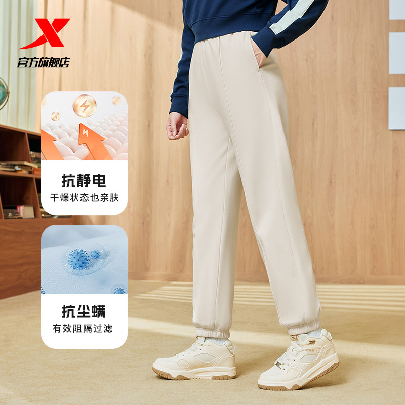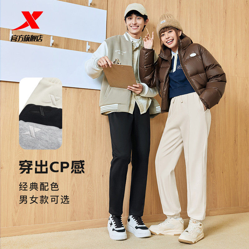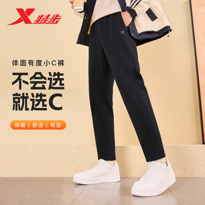 特步小C裤男女2025年秋冬新款加绒保暖抗菌裤子情侣束脚运动长裤