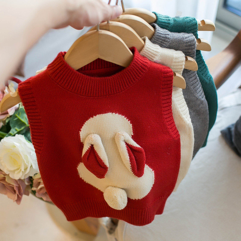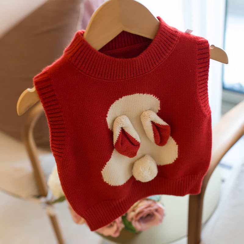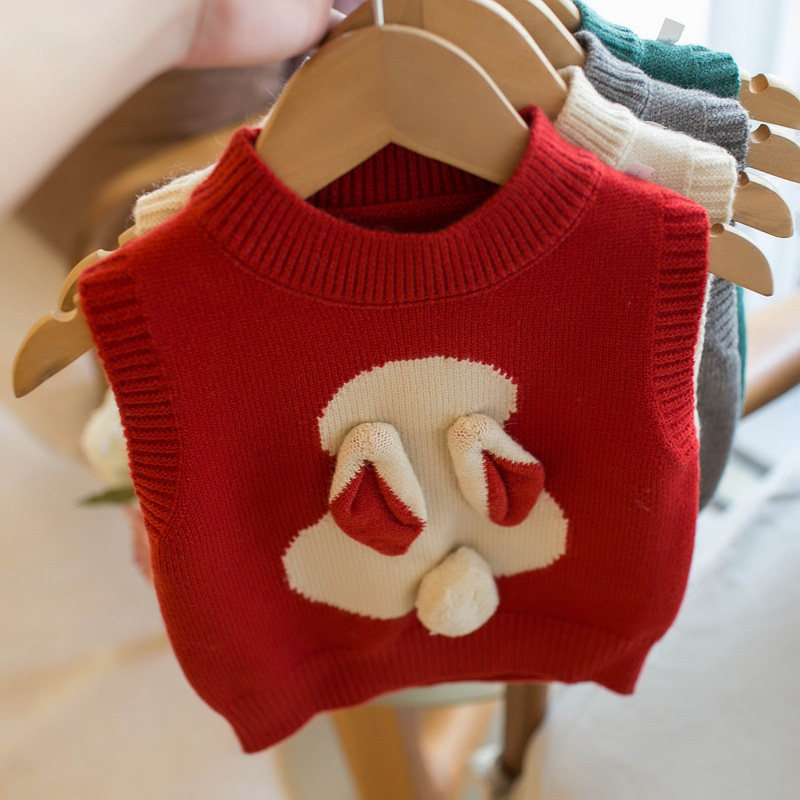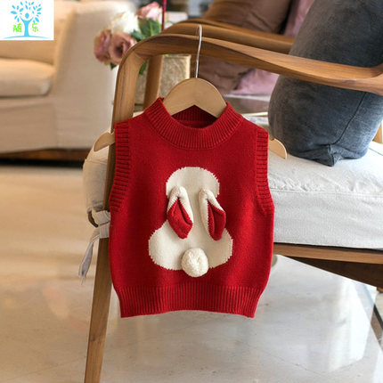 女童针织马甲加绒儿童宝宝秋冬毛衣小背心套头款婴儿外穿春秋坎肩