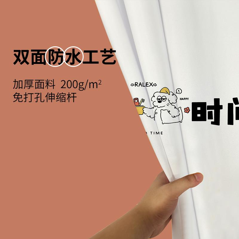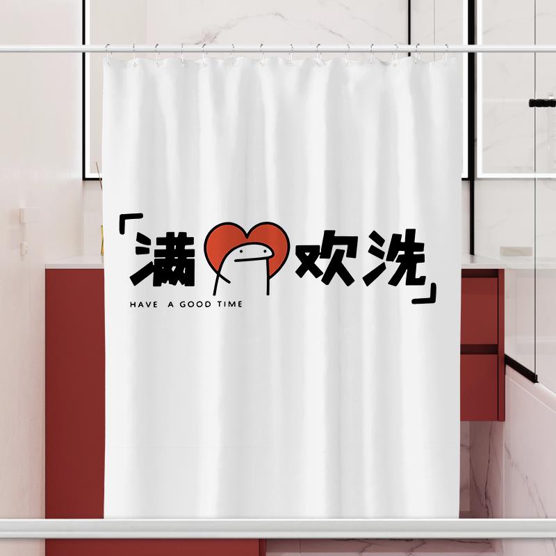 文字浴帘免打孔套装卫生间涤纶防水帘加厚浴室布帘磁性磁吸帘高档