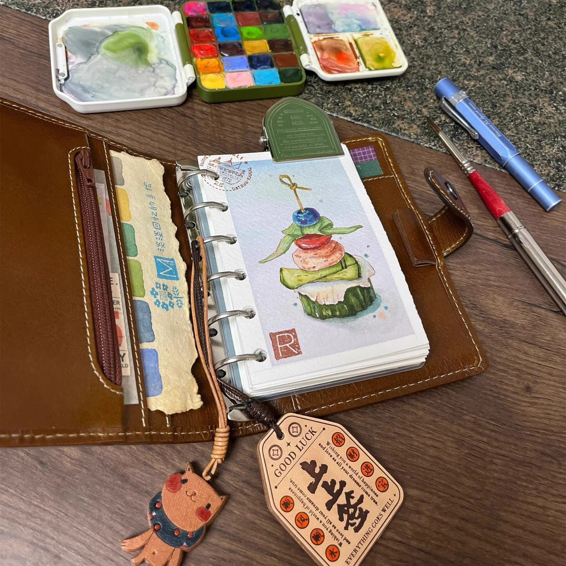 深棕m5皮质手帐活页本可拆卸高颜值笔记本随身口袋便携日记事本子