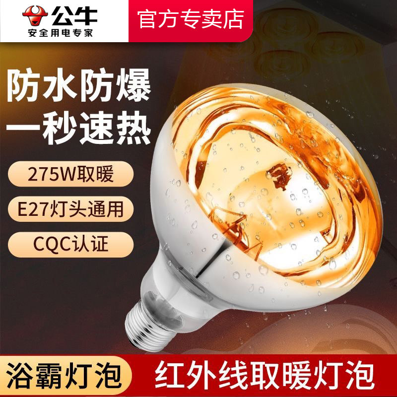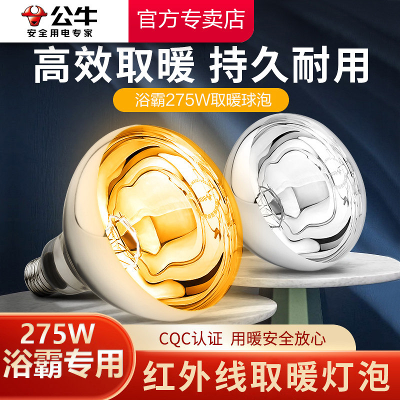 公牛浴霸灯泡红外线家用卫生间取暖灯泡灯暖浴霸275w老式浴霸灯泡