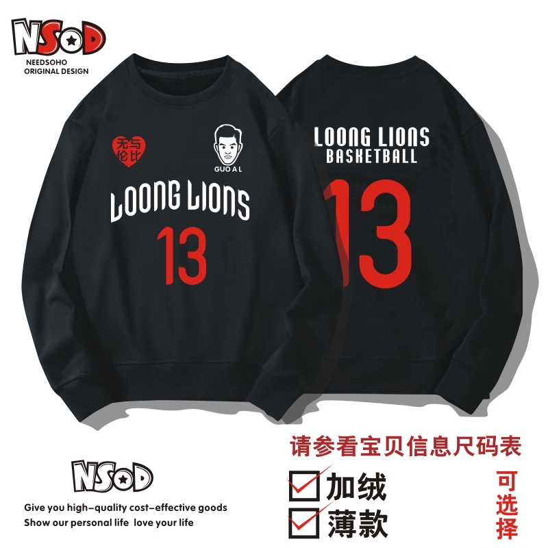 郭艾伦广州龙狮男篮卫衣长袖圆领篮球衣服13号秋冬加绒薄CBA新款