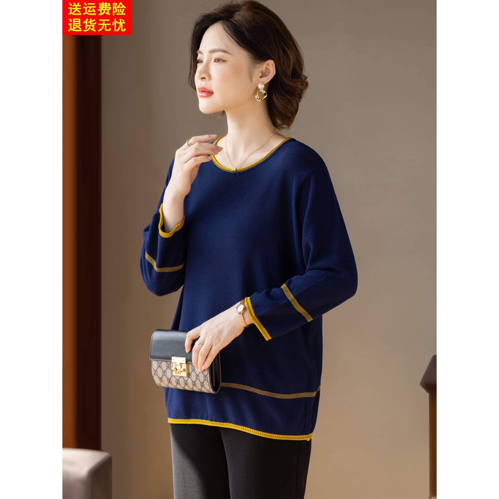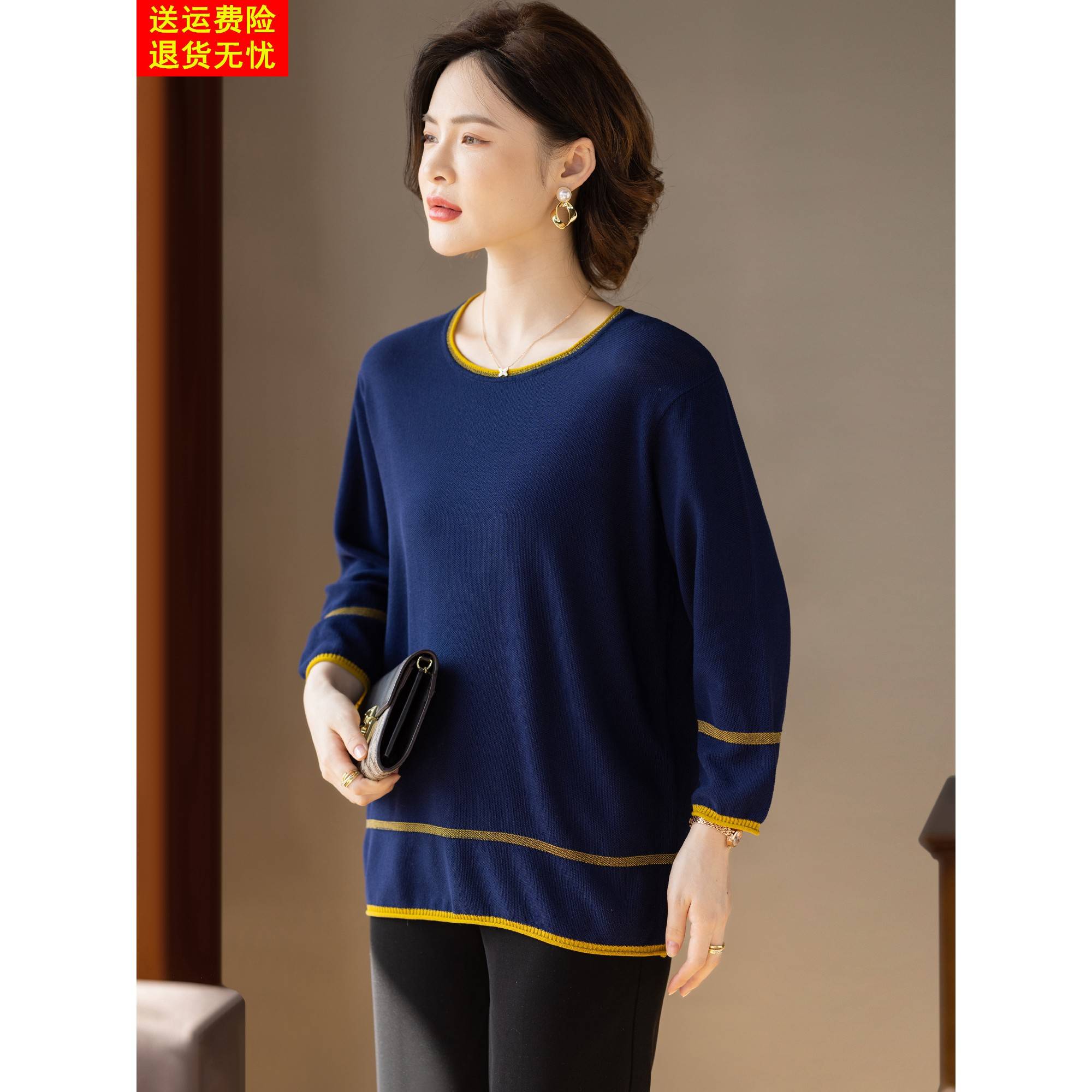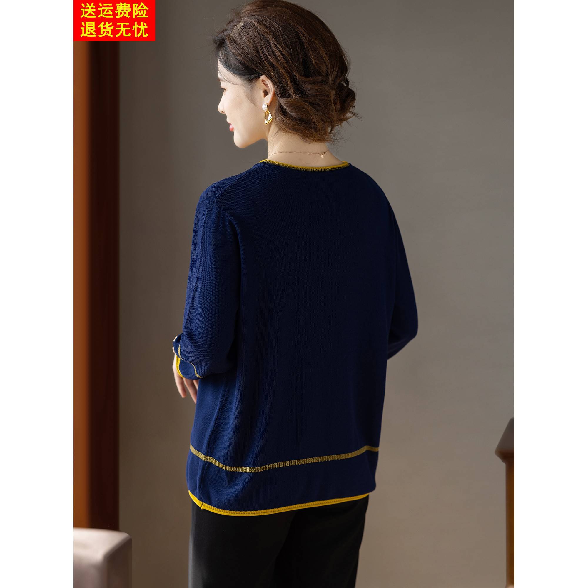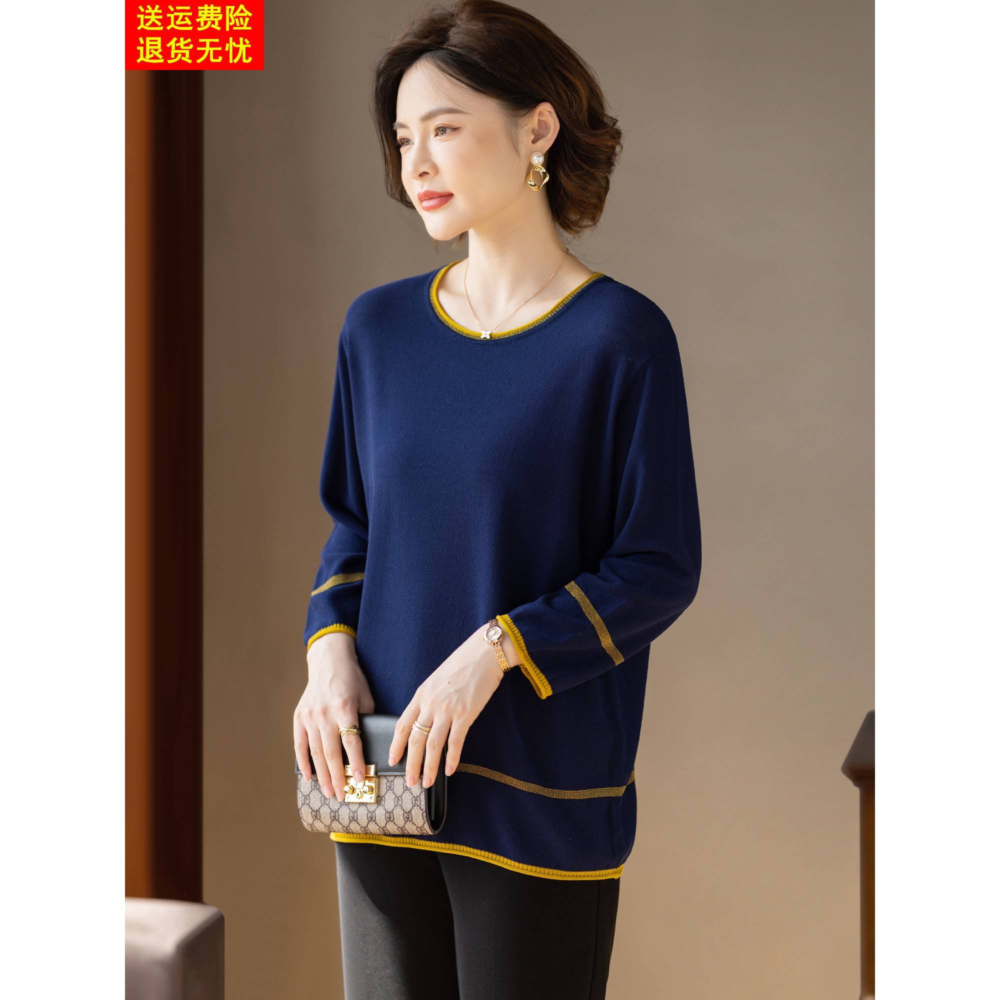 年轻妈妈秋装套装新款中年女士春秋上衣服洋气中老年女t恤针织衫