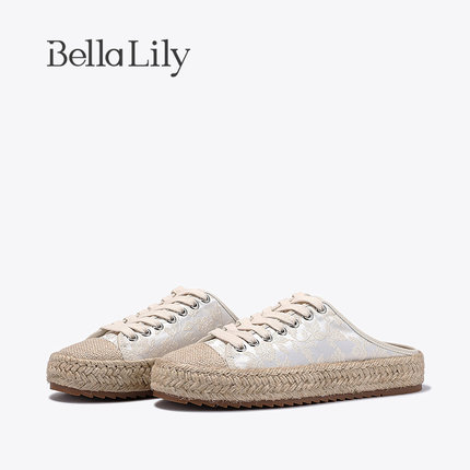 BellaLily新款麻绳外穿半包拖鞋女一脚蹬渔夫鞋透气板鞋