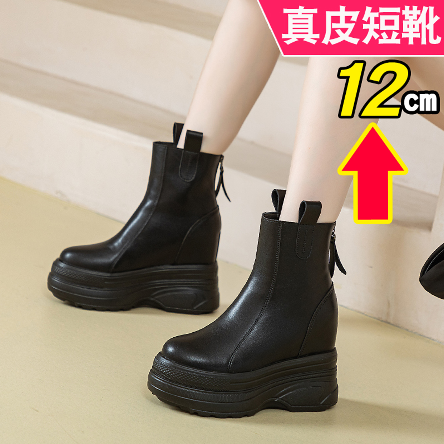 今年流行的初秋靴子女2025新款爆款冬款短靴真皮内增高12cm马丁靴