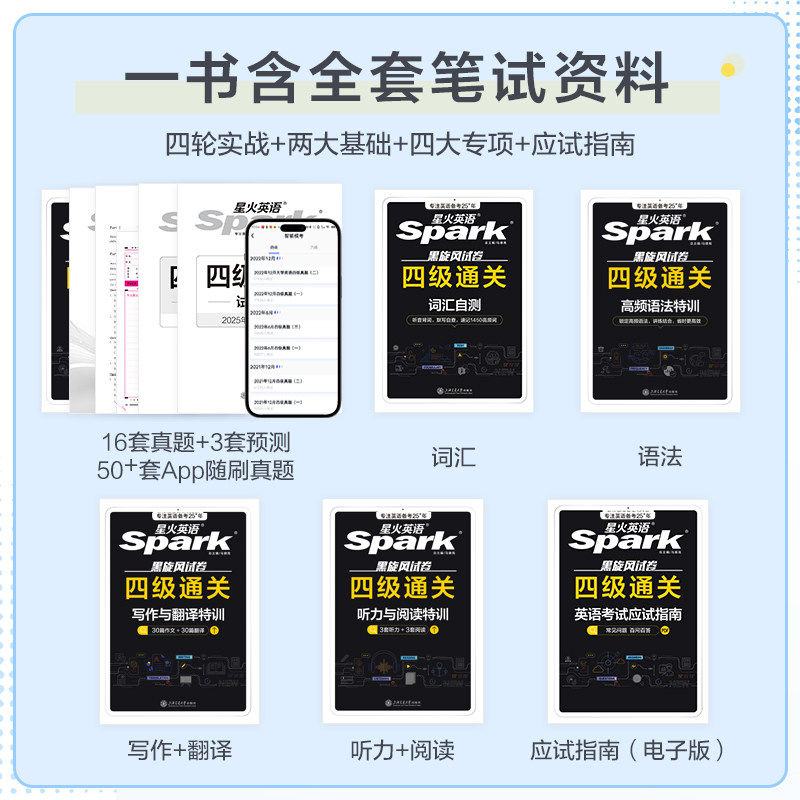 星火英语四级英语考试真题试卷练习题备考2025年6月四六级词汇单词书cet46级刷真题卷阅读理解听力作文翻译复习学习资料通关十合一