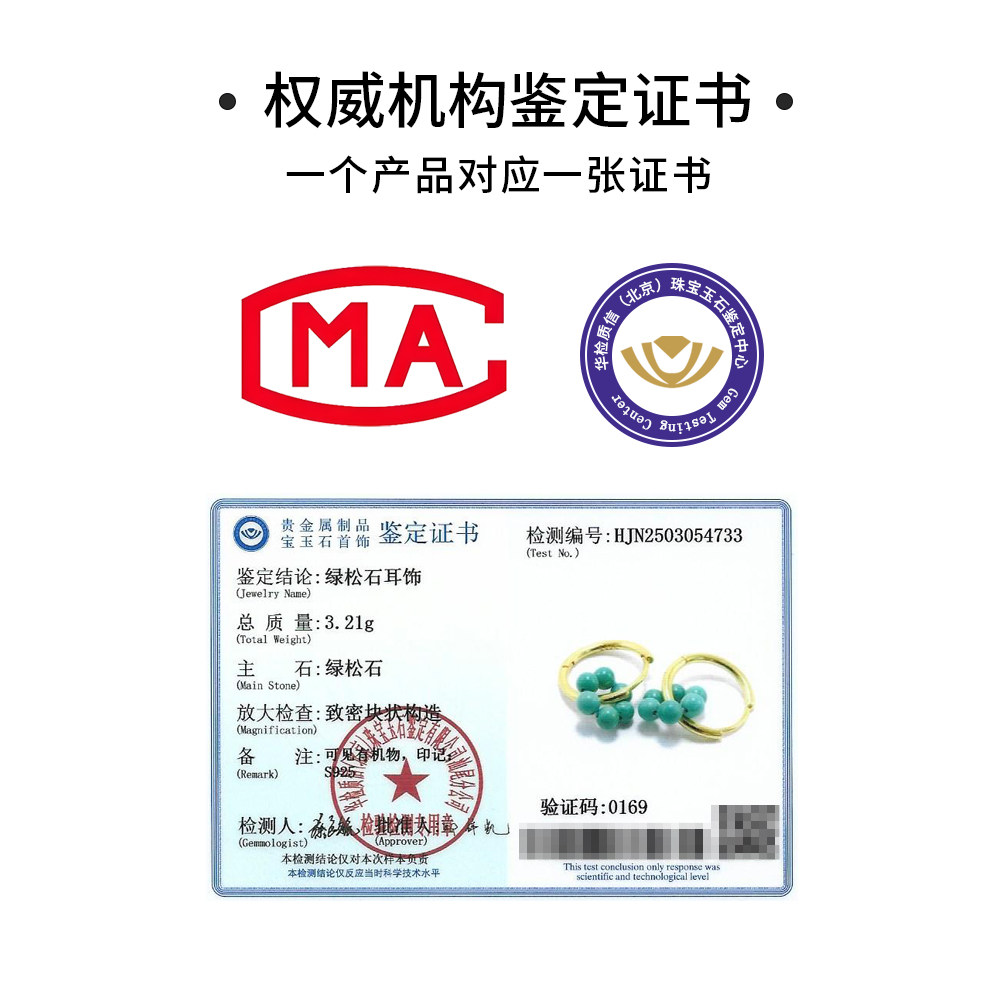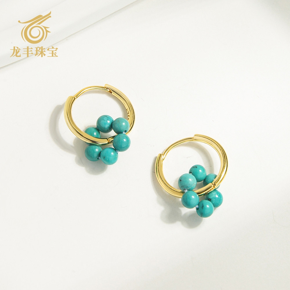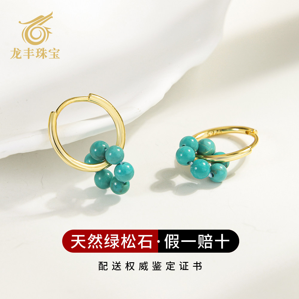龙丰绿松轩珠宝正品天然绿松石花朵圆珠女款高级感耳环轻奢耳饰品