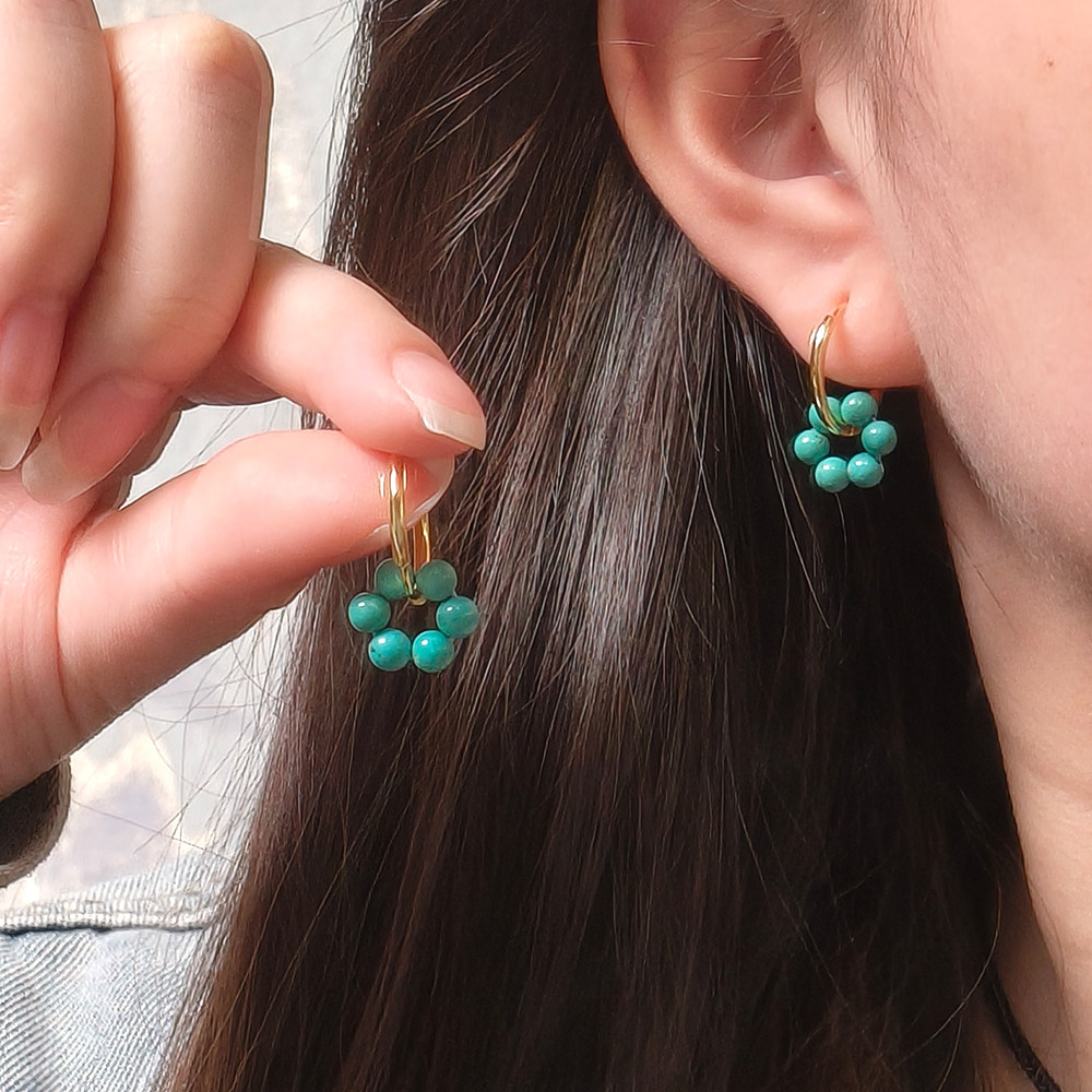 绿松石花朵圆珠耳环女款