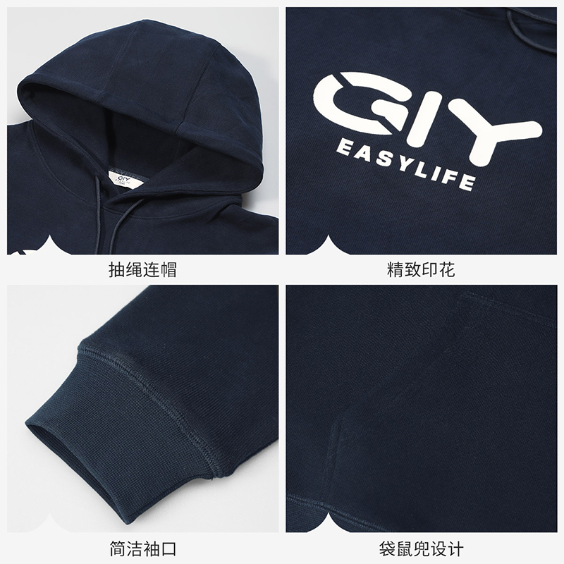金利来GY时尚休闲连帽卫衣男款纯棉休闲宽松保暖情侣长袖T恤上衣